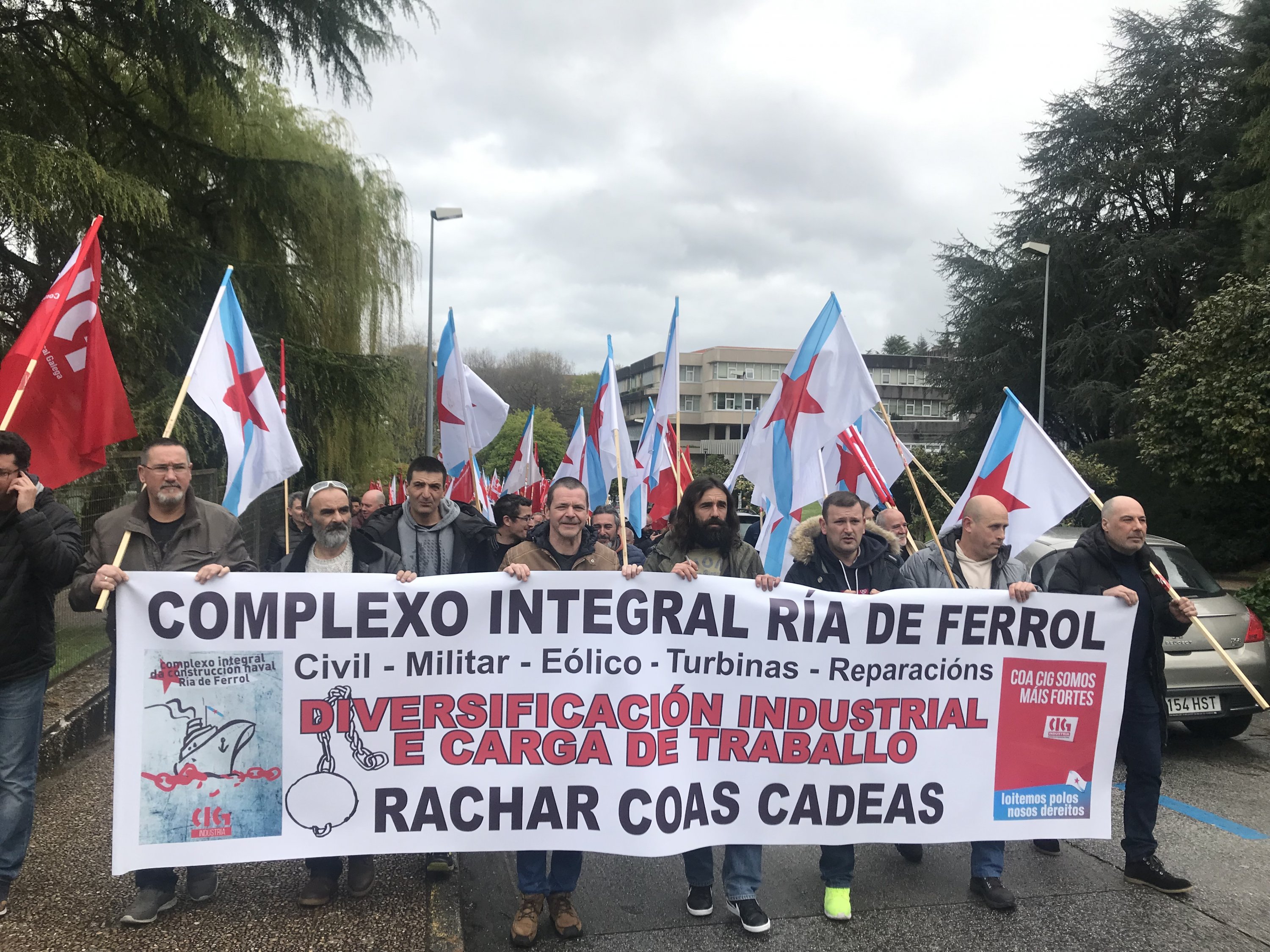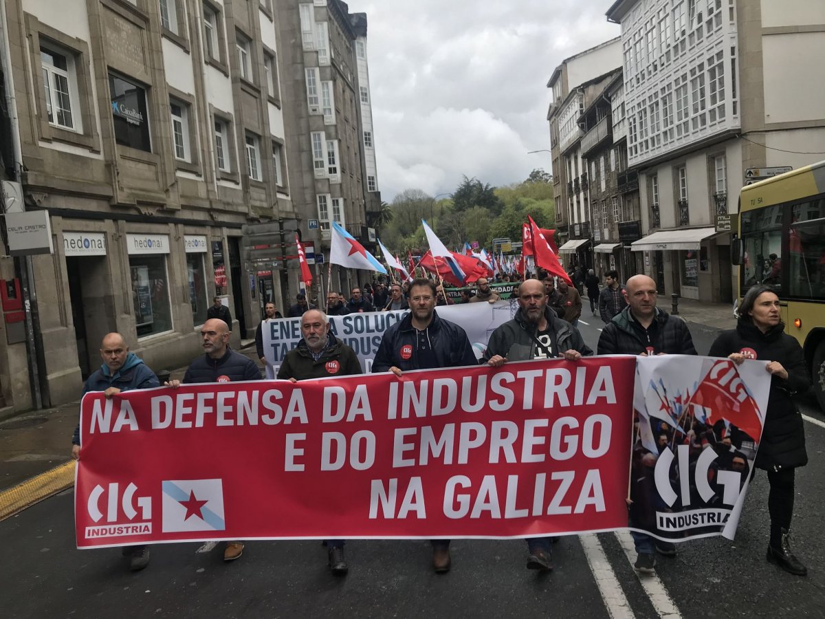 Delegados e delegadas da CIG-Industria percorreron este mércores as rúas de Compostela, desde a facultade de Dereito da USC até a Xunta en defensa do sector industrial e, nomeadamente, de sectores estratéxicos para a economía galega como o da industria electrointensiva, o sector naval ou o sector da automoción.
