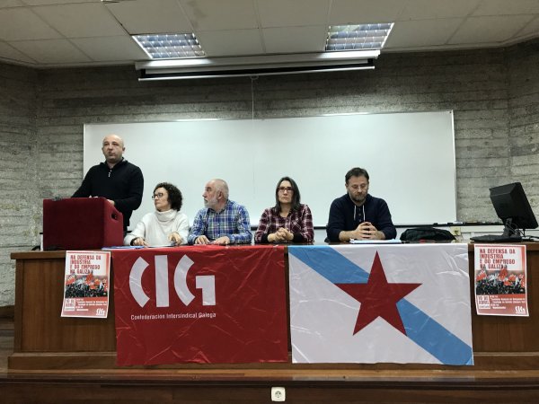 Fronte a isto, o secretario xeral da CIG denunciou que porén, no sector industrial, desde 2009, hai 20.000 persoas menos traballando. Por iso considerou “crítica” a situación xeral, máis coa crise da industria electrointesiva (Alcoa ou FerroAtlántica de Cee e Sabón); co ERE de Citröen ou os EREs da industria auxiliar do automóbil; o anuncio do peche de Poligal e da Central Térmica de Meirama. Todos eles “exemplos do proceso de desertización industrial que desde hai anos veñen provocando as políticas neoliberais, executadas sen miramentos, polo Goberno galego, polo Goberno español, sexan estes do PSOE ou do PP”.