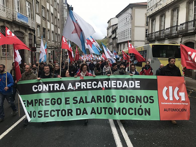 A mobilización desenvolveuse ao remate dunha masiva asemblea nacional na que se debateron as alternativas que a CIG vén defendendo nas institucións e nas rúas e que foron presentadas nas comarcas polo secretario nacional Xoán Xosé Bouzas, María Xosé García, responsábel de automoción, Xulio Moscovich, responsábel do sector das electrointensivas e Mercedes Domínguez, secretaria de Organización da federación.