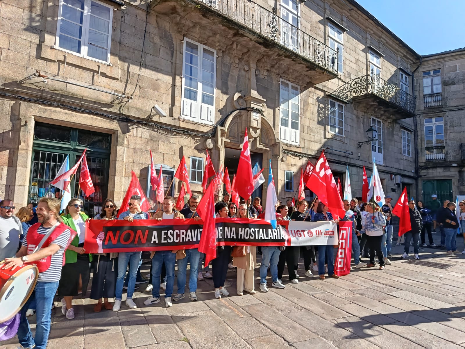 O sector de hostalaría está en loita. Esta mañá CIG, CCOO e UGT mobilizáronse para denunciar a precariedade. Non é a primeira vez, nin será a última. Cuestionan a unha patronal que viu como medraban os seus beneficios, mentres os salarios e as condicións laborais seguen sendo pésimas.
