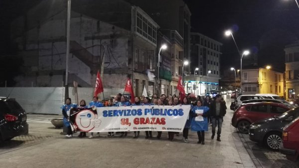 Ducias de persoas acompañaron esta tarde as traballadoras do Servizo de Axuda no Fogar de Chantada na manifestación que realizaron contra a decisión do Goberno municipal de privatizar este servizo a partir do próximo mes de xaneiro. A mobilización, que partiu do local da CIG e discorreu polas rúas do centro da vila, serviu para visibilizar o rexeitamento que a externalización suscita entre a veciñanza.