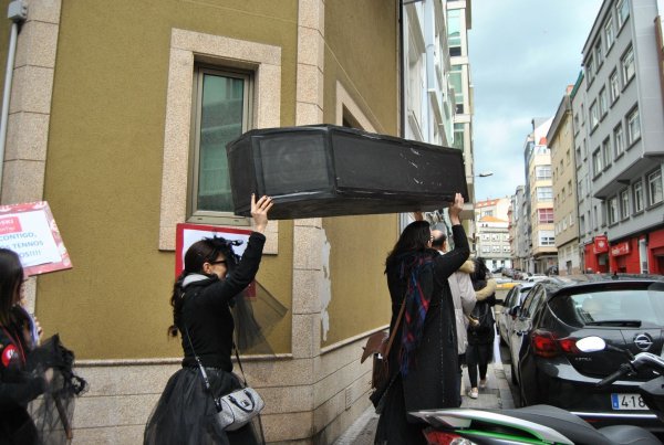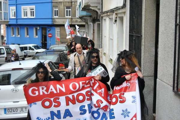 Aproveitando a celebración do mércores de cinza que pon remate ao entroido, as delegadas/os da CIG vestíronse de loito rigoroso e transportaron un cadaleito nunha procesión na que non faltou nin o cura, percorrendo distintos supermercados Eroski e Familia da zona de Montealto.
