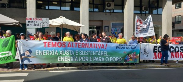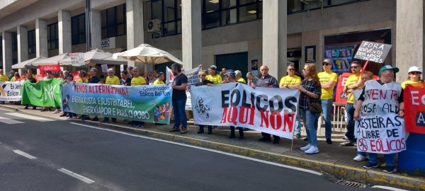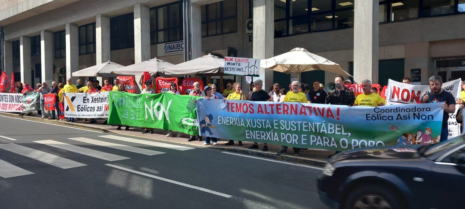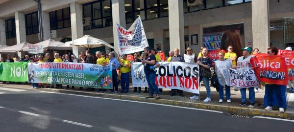 Eólica Así Non concéntrase diante do Parlamento para exixir a Rueda un cambio radical na súa política enerxética