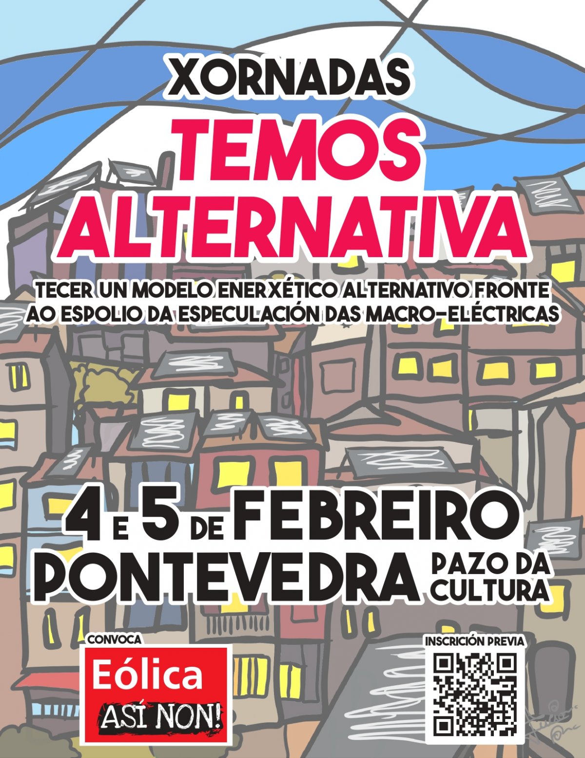 Para poder participar nas xornadas “Temos Alternativa”, organizadas para a Coordinadora Eólica Así Non para os días 4 e 5 de febreiro, é preciso inscribirse previamente a través dun formulario online destinado a tal fin, ou chamando por teléfono ao 981570099.