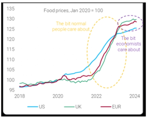 Entre 2020-2023, o crecemento real dos ingresos antes de impostos para o 50% inferior dos que gañan ingresos nos Estados Unidos foi basicamente cero. Os prezos dos bens e servizos subiron máis do 20 % desde o final da pandemia e para os alimentos básicos é aínda máis alto. Ademais, o enorme aumento das taxas de xuros por parte da Reserva Federal para "controlar" a inflación aumentou as taxas hipotecarias, as primas de seguro, o pagamento do alugueiro de automóbiles e as facturas de cartóns de crédito.