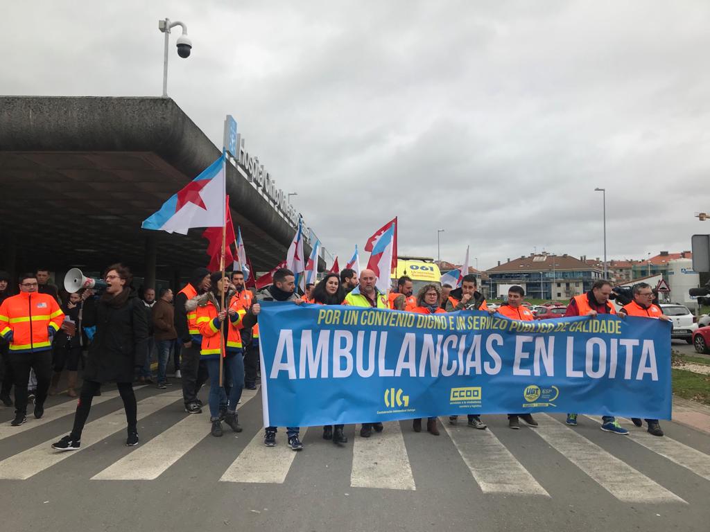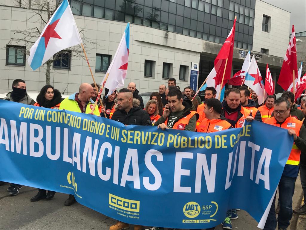A primeira xornada de folga convocada no sector de ambulancias está a rexistrar un amplísimo seguimento, malia os abusivos "servizos máximos" decretados pola Xunta de Galiza que alcanzan ao 75% do persoal. Así e todo, traballadores e traballadoras participaron nos piquetes informativos que ao longo da xornada se xuntaron nos arredores dos principais hospitais de Galiza, visibilizando unha folga que, de non producírense avances significativos, tería carácter indefinido a partir de marzo.