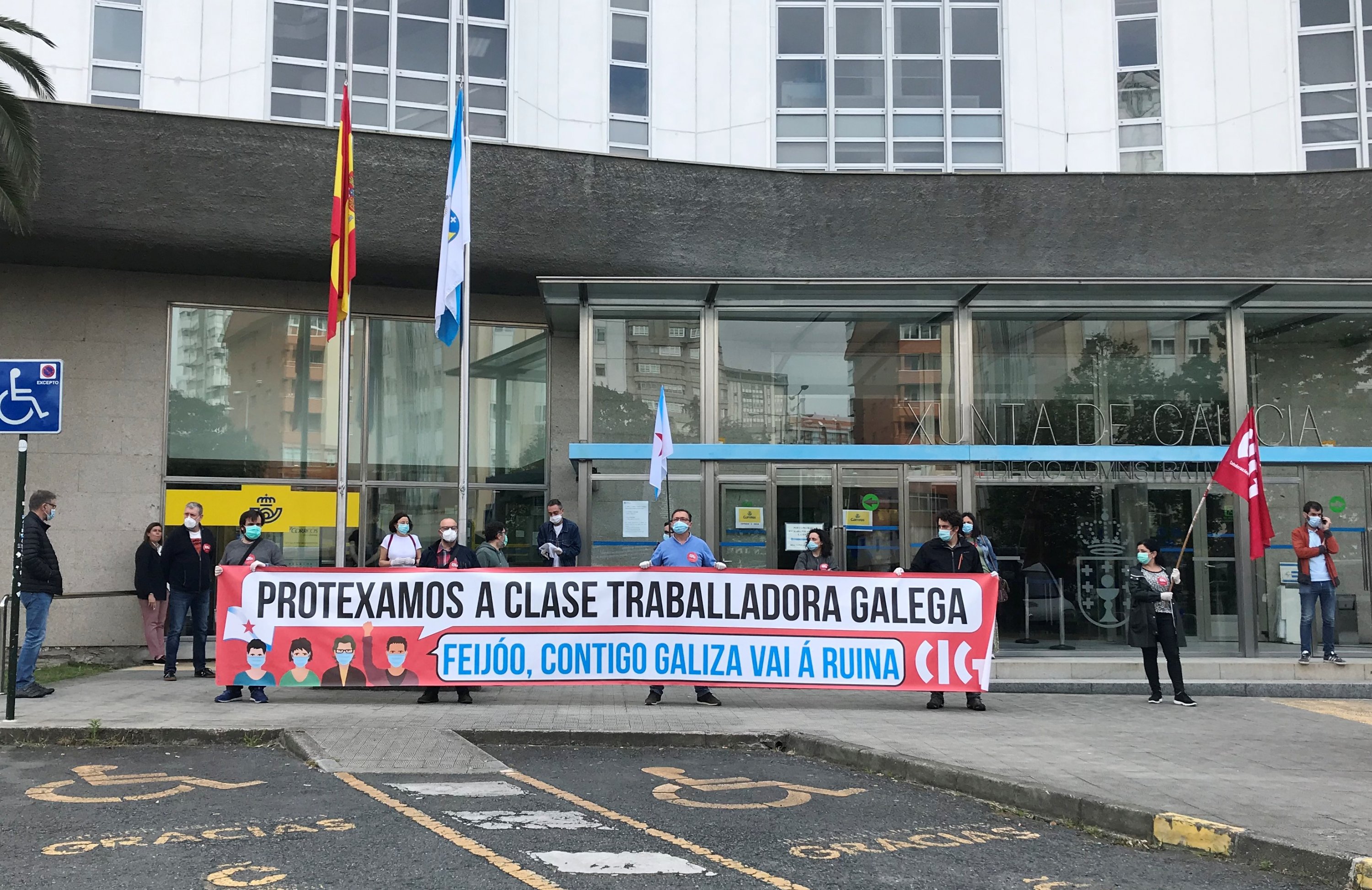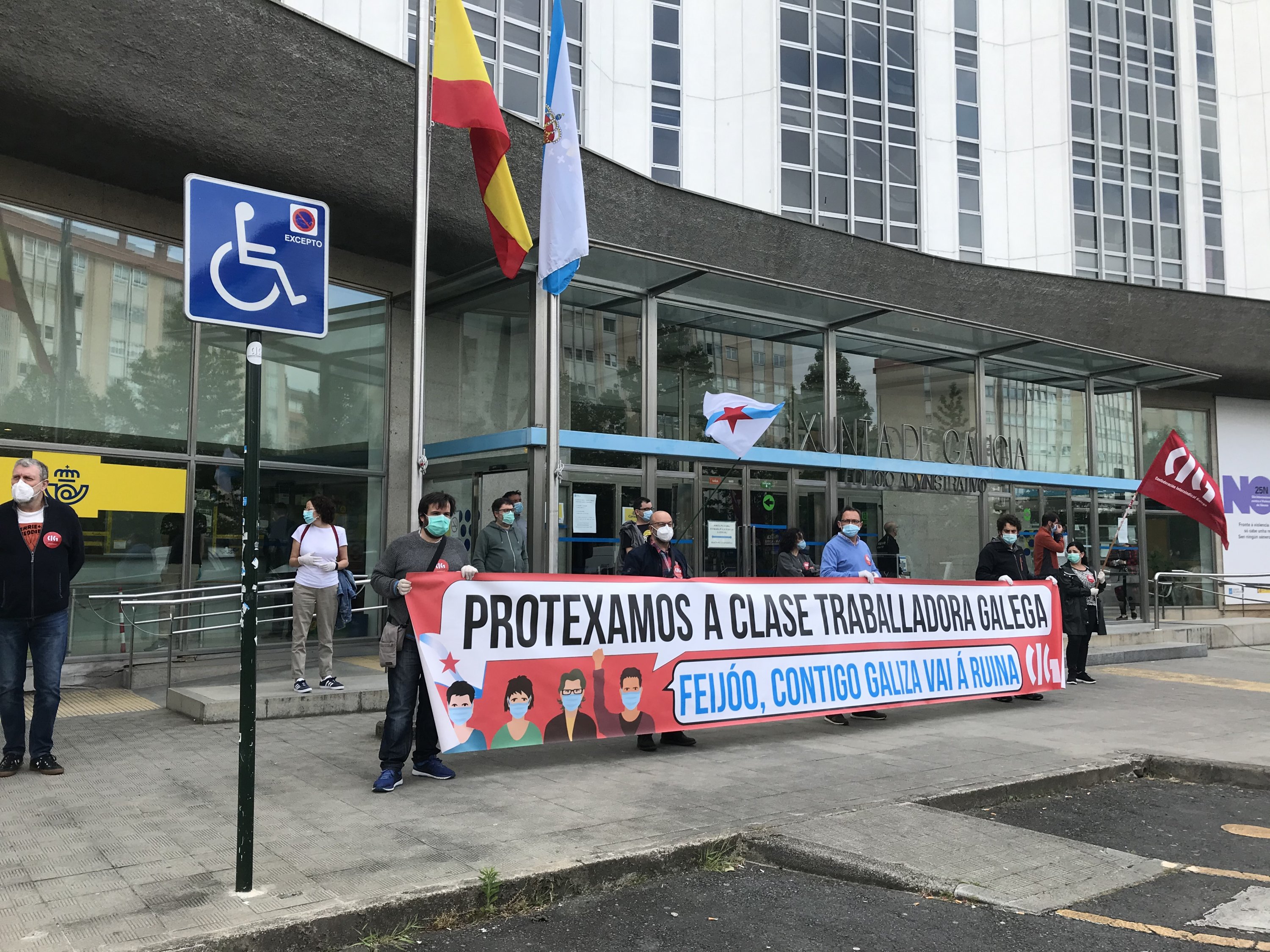 A CIG realiza accións de protesta nos edificios da Xunta en demanda de políticas para unha saída xusta e galega da crise sanitaria