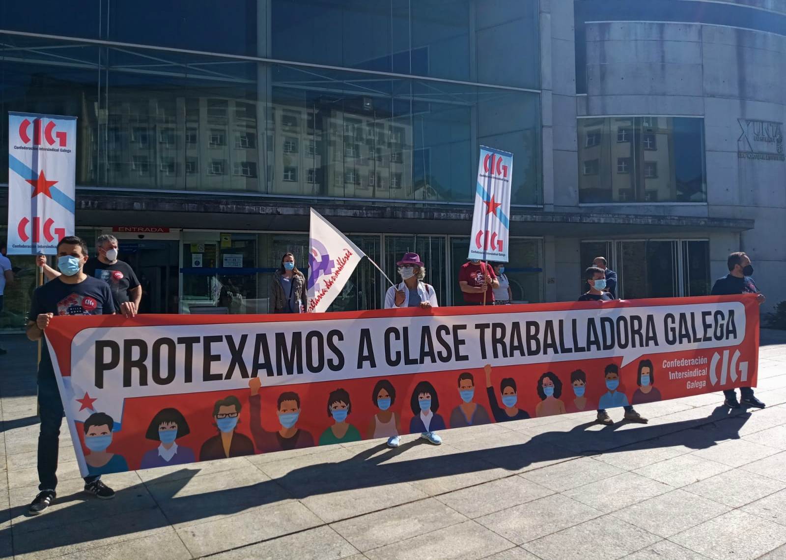 A CIG desenvolveu este mércores unha xornada de protestas diante de edificios da Xunta de Galiza das sete cidades e máis en Vilagarcía e Cee para denunciar as nefastas políticas económicas, industriais e laborais aplicadas polo Goberno de Feixoo, que se teñen demostrado aínda máis fatídicas na actual situación de emerxencia sanitaria. Con estas accións, realizadas baixo o lema "Protexamos a clase traballadora galega. Feixoo, contigo Galiza vai á ruína", a CIG reclama da Xunta políticas que permitan unha saída á crise favorábel ás maiorías sociais e que doten de futuro a Galiza.