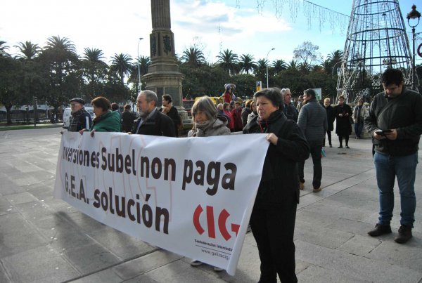 Ex traballadores e traballadoras de Grupo de Empresas Álvarez (GEA) realizaron este luns unha cacerolada no Obelisco da Coruña para visibilizar o conflito que teñen aberto dende hai máis dunha década con Inversiones Subel, empresa de Luis Fernández Somoza a quen reclaman que lles abone a totalidade das cantidades acordadas pola venda dos terreos que GEA ocupaba en Cabral e Coruxo (Vigo).
