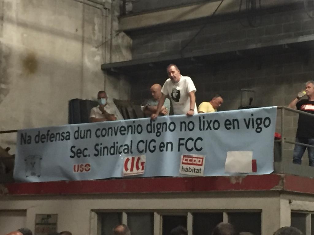 O comité de empresa de FCC, concesionaria do servizo de recollida de lixo e limpeza viaria e de praias do Concello de Vigo, anunciou hoxe a convocatoria de folga indefinida para rexeitar a intención da compañía de precarizar o convenio colectivo. A medida de presión, acordada onte en asemblea pola maioría do cadro de persoal, dará comezo ás 6:00 horas do vindeiro venres 15 de xullo.