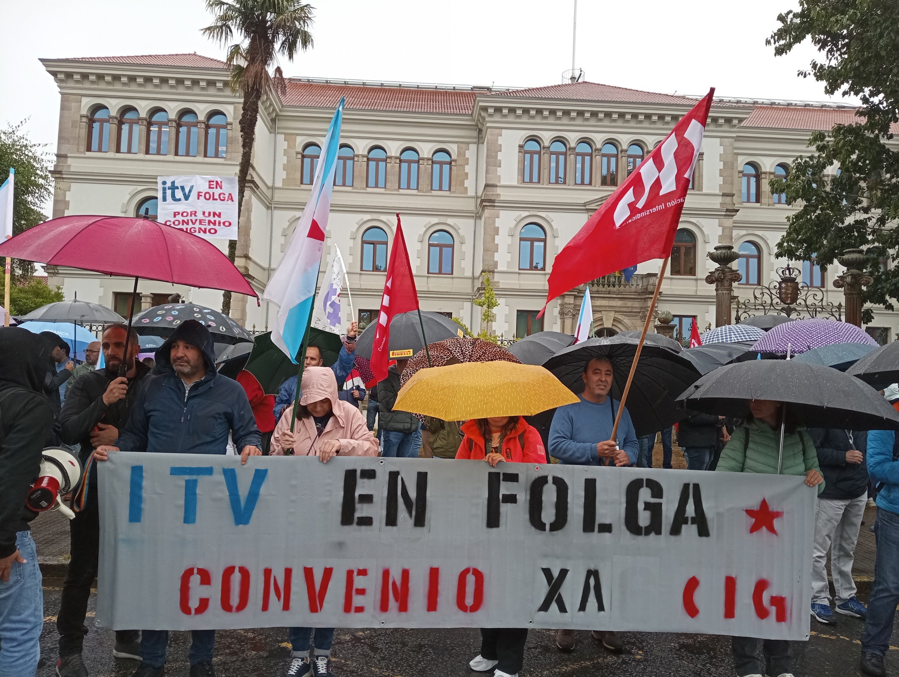 Traballadores e traballadoras das ITV galegas concentráronse esta mañá diante do edificio administrativo da Xunta, en Compostela, coincidindo coa quinta xornada de folga, para reclamar avances na negociación do convenio e que a administración lles dea acceso ao prego de condicións. No decurso da mobilización anunciaron que se non hai novas xuntanzas e se atenden ás súas reivindicacións irán á folga a partir do 16 de setembro.