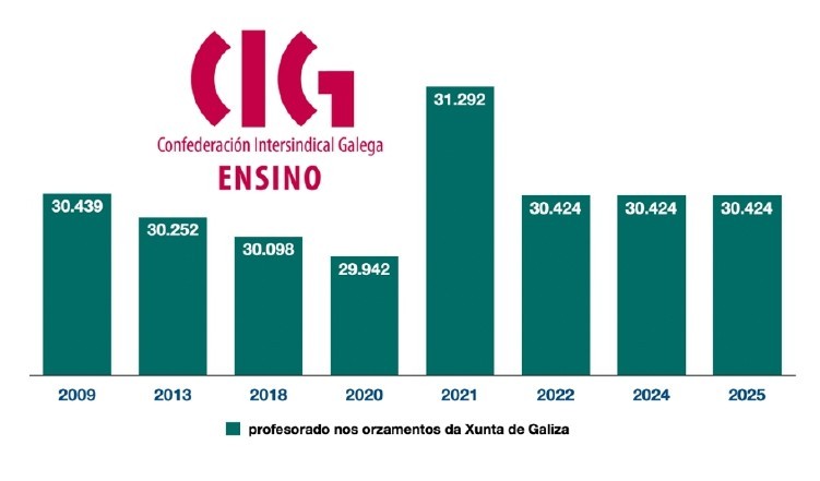 “Hai datos dos que non dispomos porque Educación non os facilita, como as baixas por saúde mental relacionadas co propio traballo, pero si tendencias claramente constatábeis como o incremento das xubilacións anticipadas, de excedencias voluntarias ou de renuncias a interinidades e a substitucións no ensino que nunca antes se produciran”. Ao mesmo tempo, salienta que “temos un profesorado literalmente queimado, con ratios que en moitos casos supoñen atender a arredor de 200 estudantes; unha diversidade cada vez maior nas aulas caracterizada por múltiples diagnósticos, protocolos, condutas autolíticas, alumnado migrante recén chegado, etc. que non existía hai unha década; unha burocracia abafante que fai que cada decisión que toma un docente teña que recollerse nun trámite que pode repitirse tres ou catro veces, como denuncian os departamentos de Orientación; o peor horario lectivo en secundaria, FP e ensinanzas de réxime especial de todo o Estado; unha privatización cada vez máis feroz centrada sobre todo na Formación Profesional na que as empresas campan ás súas anchas e na que se prevé substituír parte do profesorado por profesionais do sector privado coa creación da figura do docente asociado; e unha Consellaría obsesionada coa imaxe e a publicidade, que dedica inxentes recursos cada ano a eventos e asesorías, e tamén por controlar o labor pedagóxico nos centros e censurar todo o que soe a educación nos valores democráticos, pacifistas, ecoloxistas e feministas nos que non cren os seus dirixentes, como se demostrou co mantemento no posto de subdirector xeral da Inspección dunha persoa radicalmente retrógrada”.