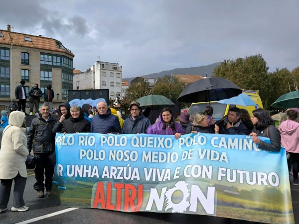 Participantes e organizadores da mobilización coincidiron ademais en denunciar o “insulto á intelixencia” que é intentar impor a mina e a celulosa como modelo de industrialización deste país. “Xusto no contexto actual de cambio climático, cando a auga cada vez vai ser máis importante e valiosa, porque vai ser mais escasa, queren regalarlla aos seus amiguetes. Nós precisamos auga de calidade para beber as nosas familias e para as nosas actividades agrogandeiras e marisqueiras e a Xunta do PP vai contaminarnos a auga”.