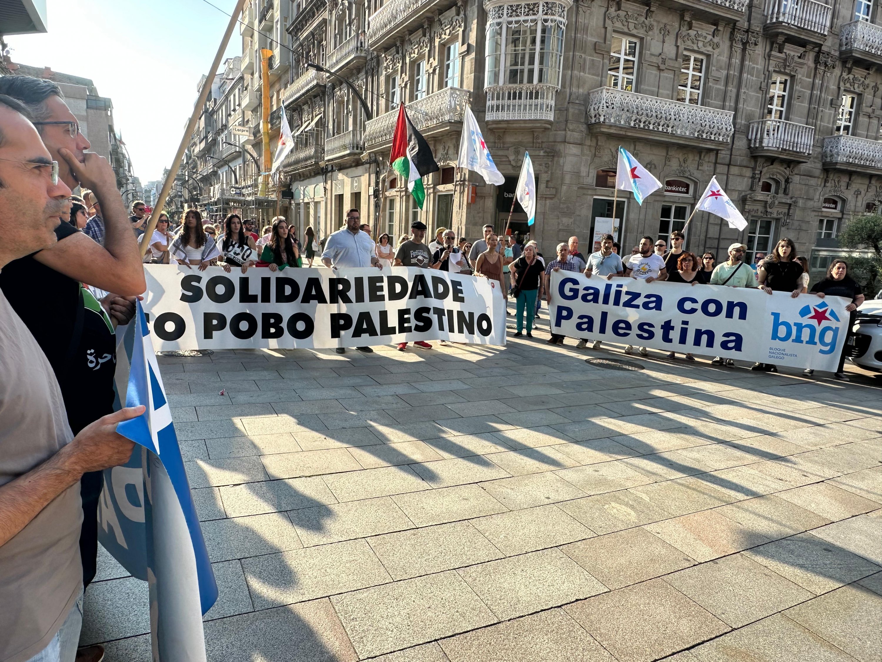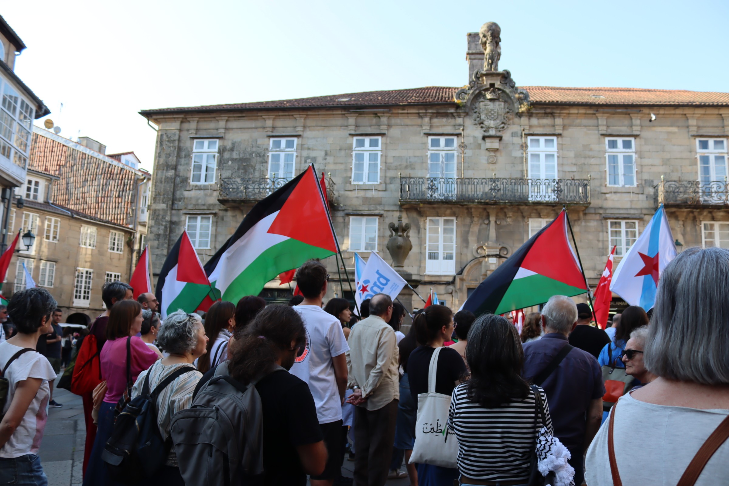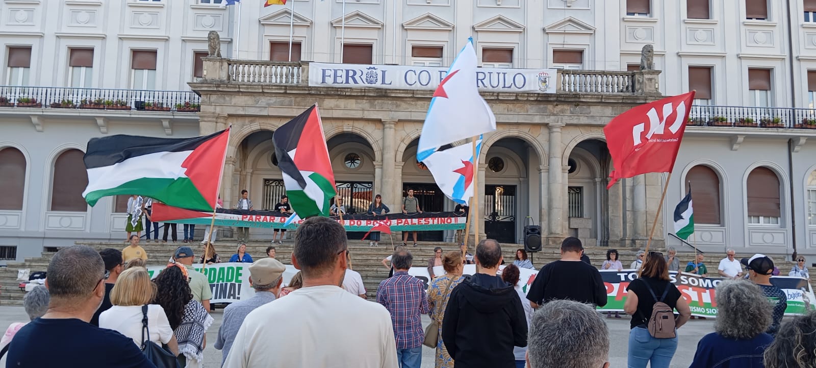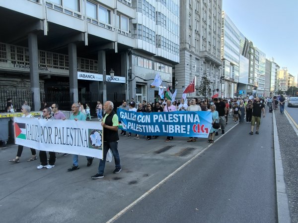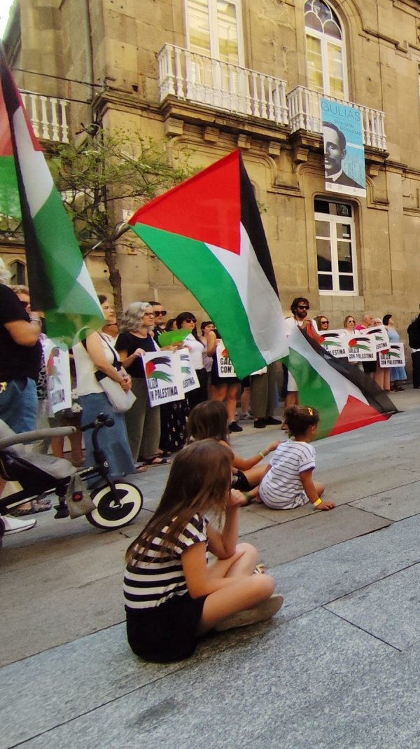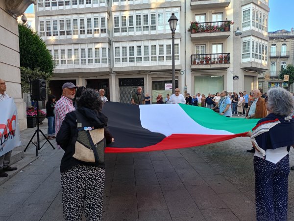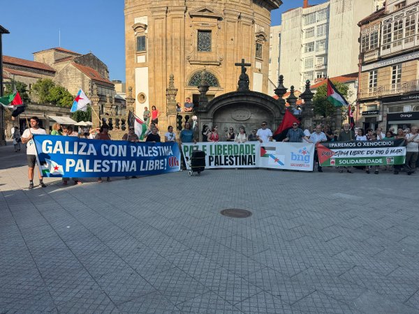 Hoxe, en 39 localidades, Galiza demostra máis unha vez a súa solidariedade firme e sen descanso coa Palestina e coa resistencia inesgotábel do seu pobo, primeiro contra as bombas e agora tamén contra a fame empregada como arma de guerra polo ocupante.