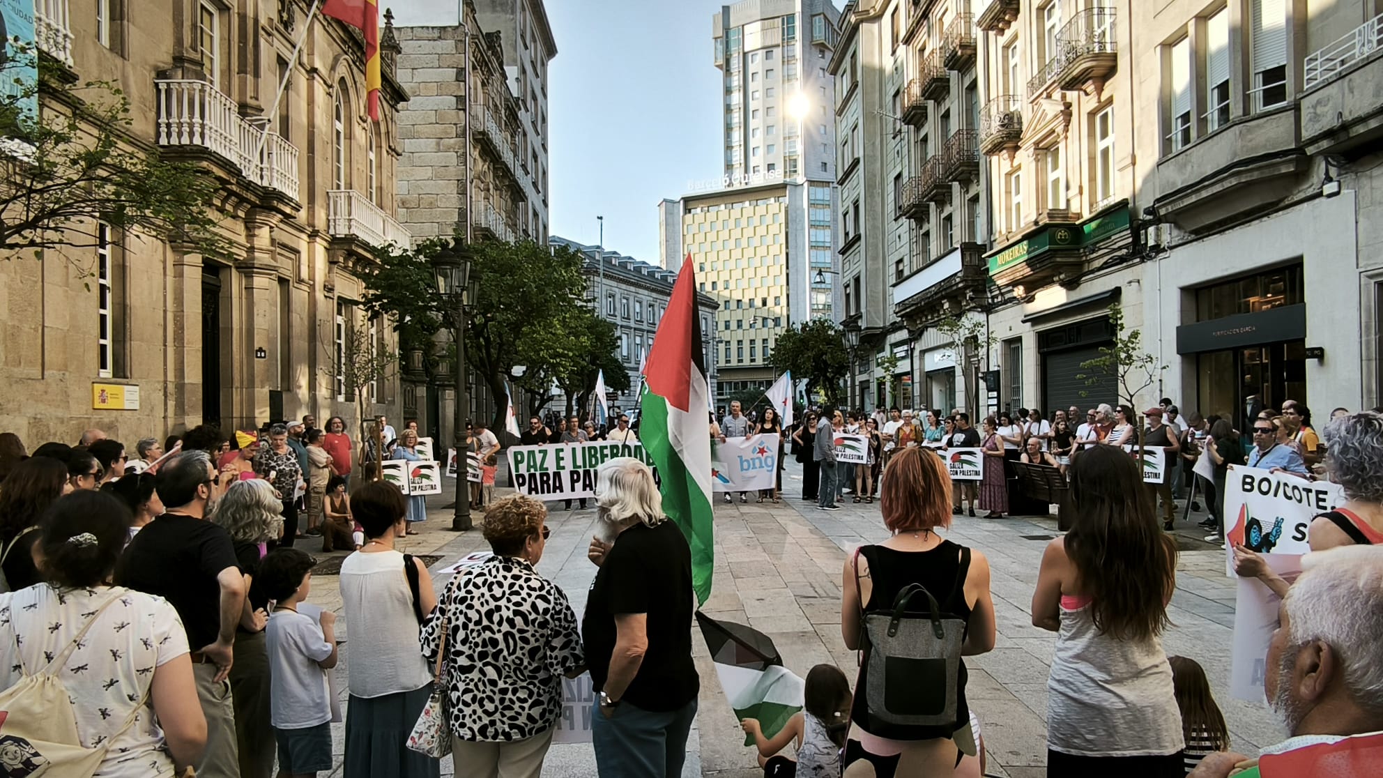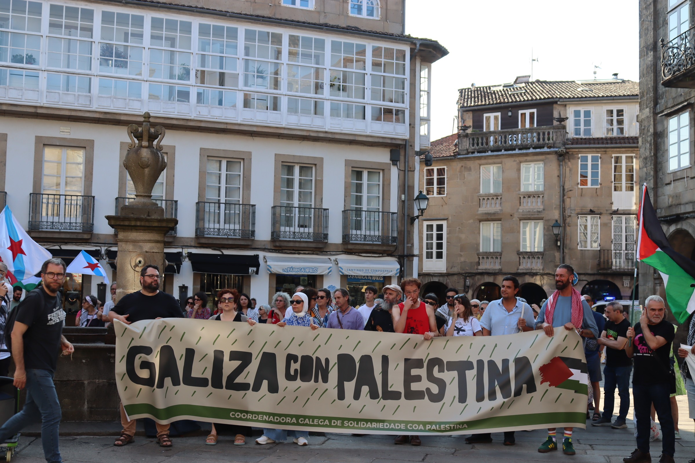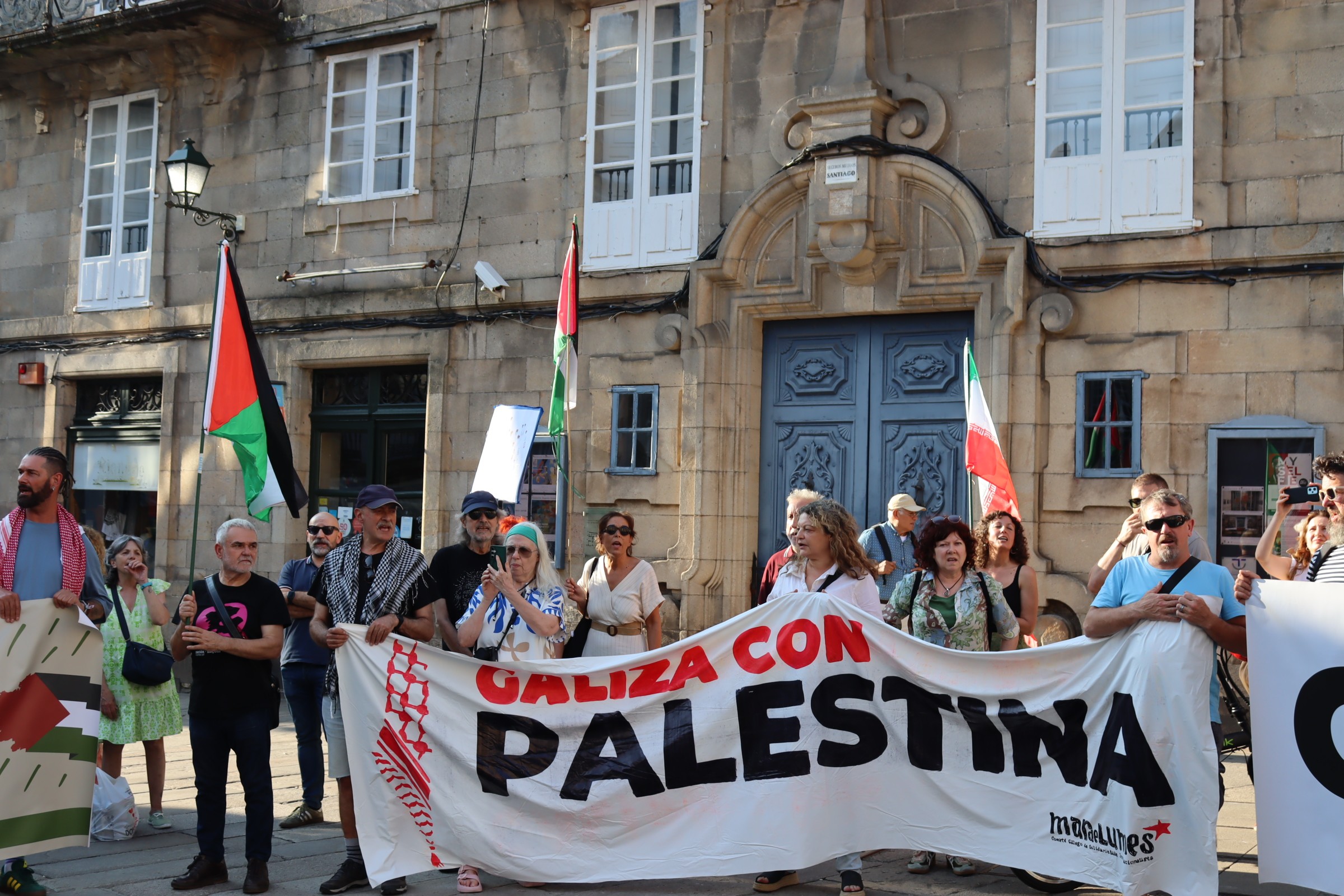 Hoxe, en 39 localidades, Galiza demostra máis unha vez a súa solidariedade firme e sen descanso coa Palestina e coa resistencia inesgotábel do seu pobo, primeiro contra as bombas e agora tamén contra a fame empregada como arma de guerra polo ocupante.