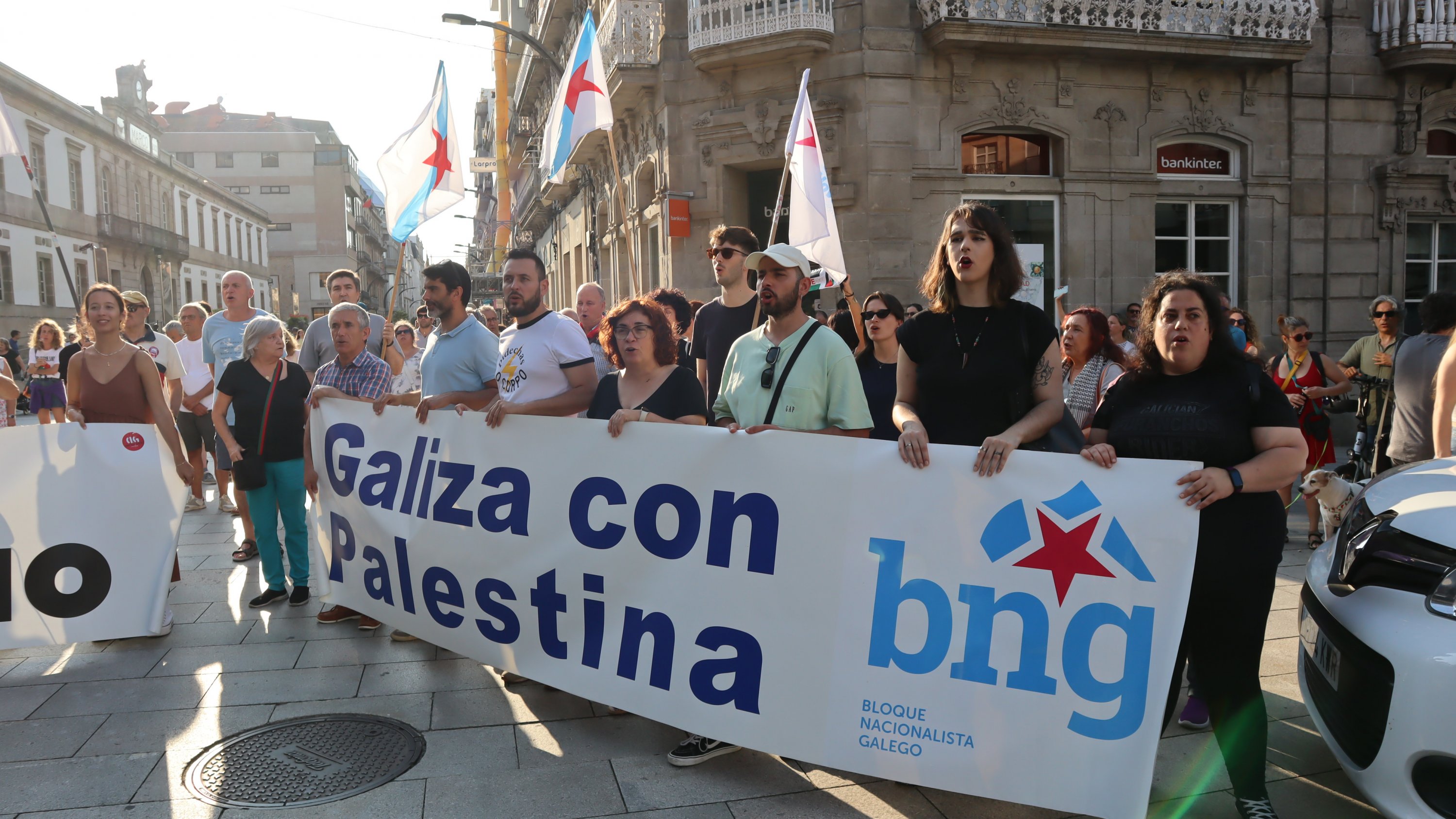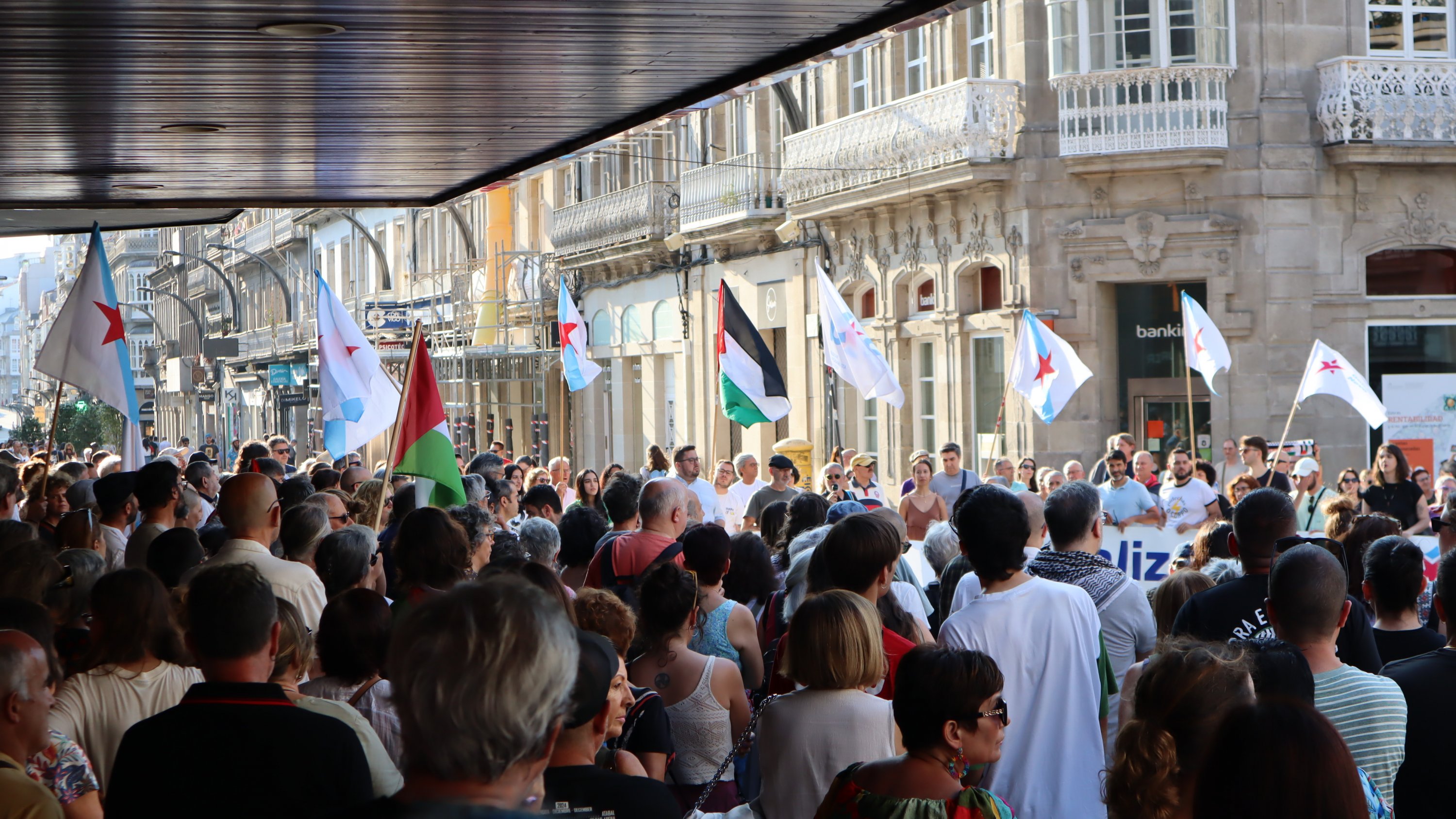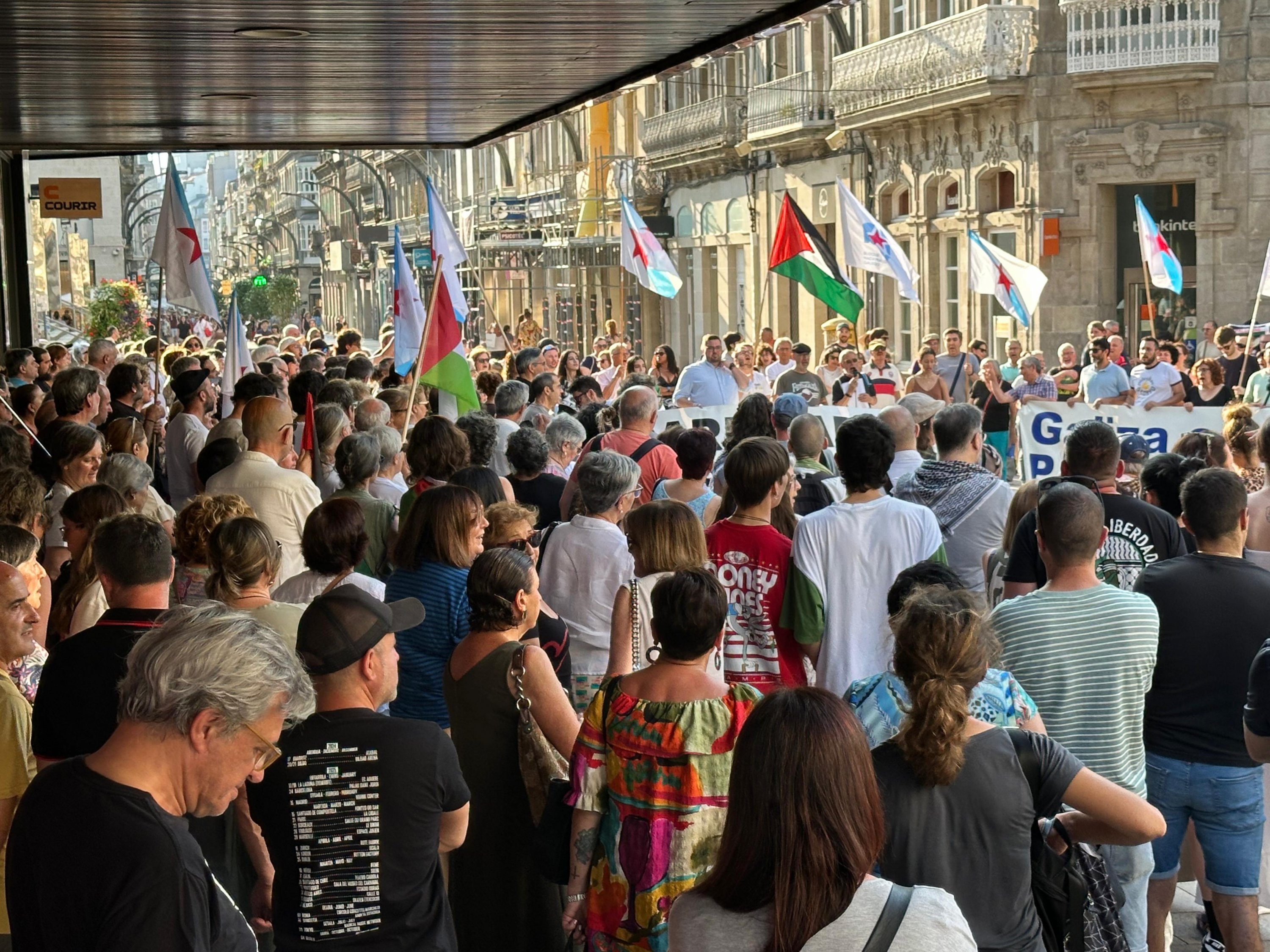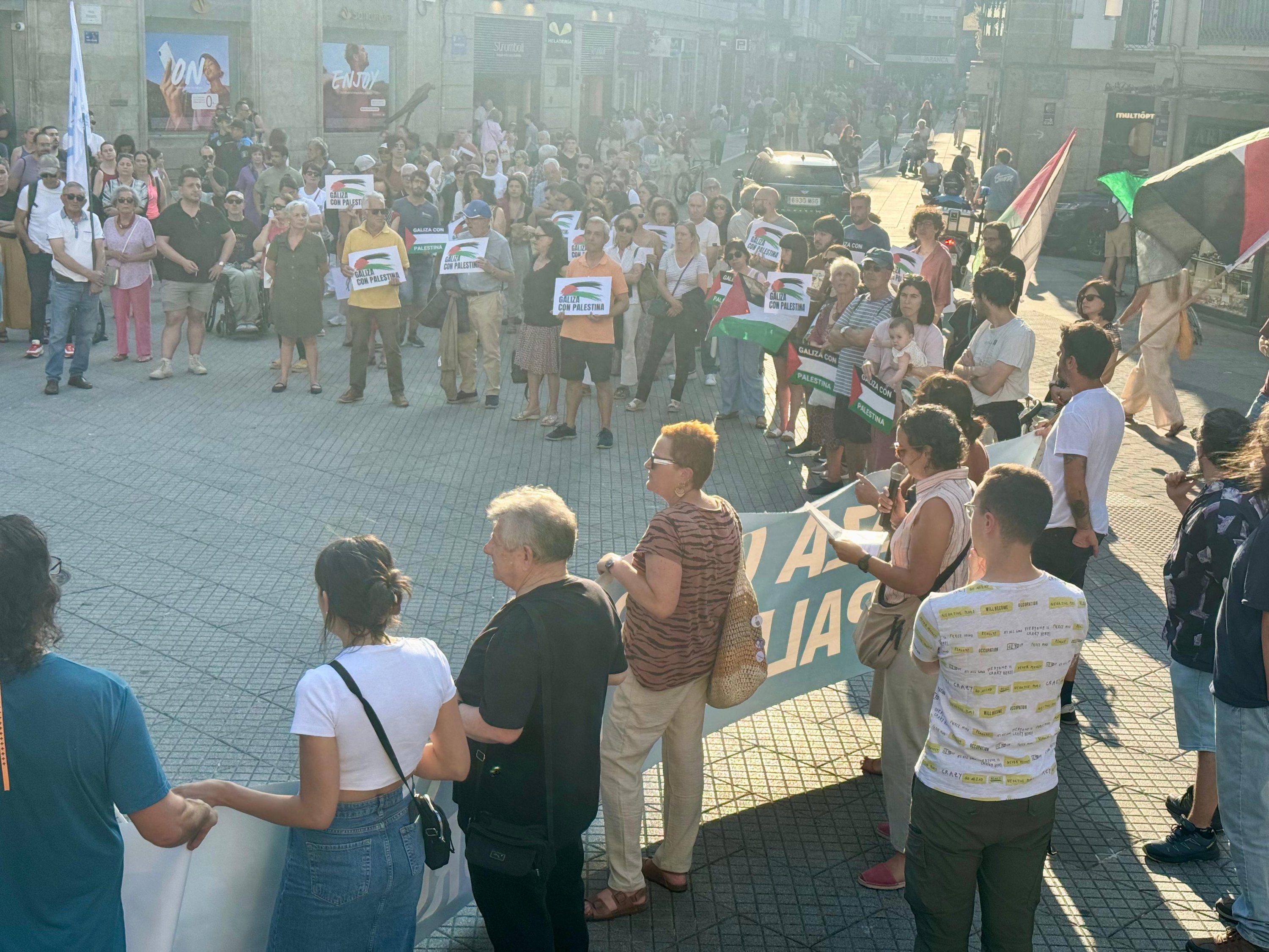 Hoxe, en 39 localidades, Galiza demostra máis unha vez a súa solidariedade firme e sen descanso coa Palestina e coa resistencia inesgotábel do seu pobo, primeiro contra as bombas e agora tamén contra a fame empregada como arma de guerra polo ocupante.