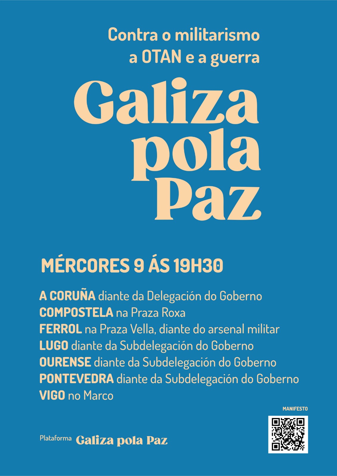 “Galiza pola Paz” lanza unha convocatoria de mobilizacións contra a escalada belicista o 9 de abril nas cidades galegas