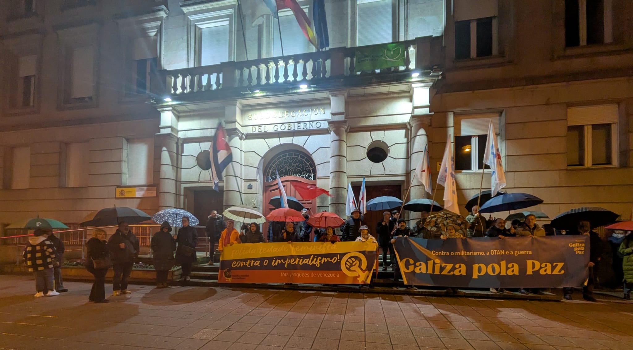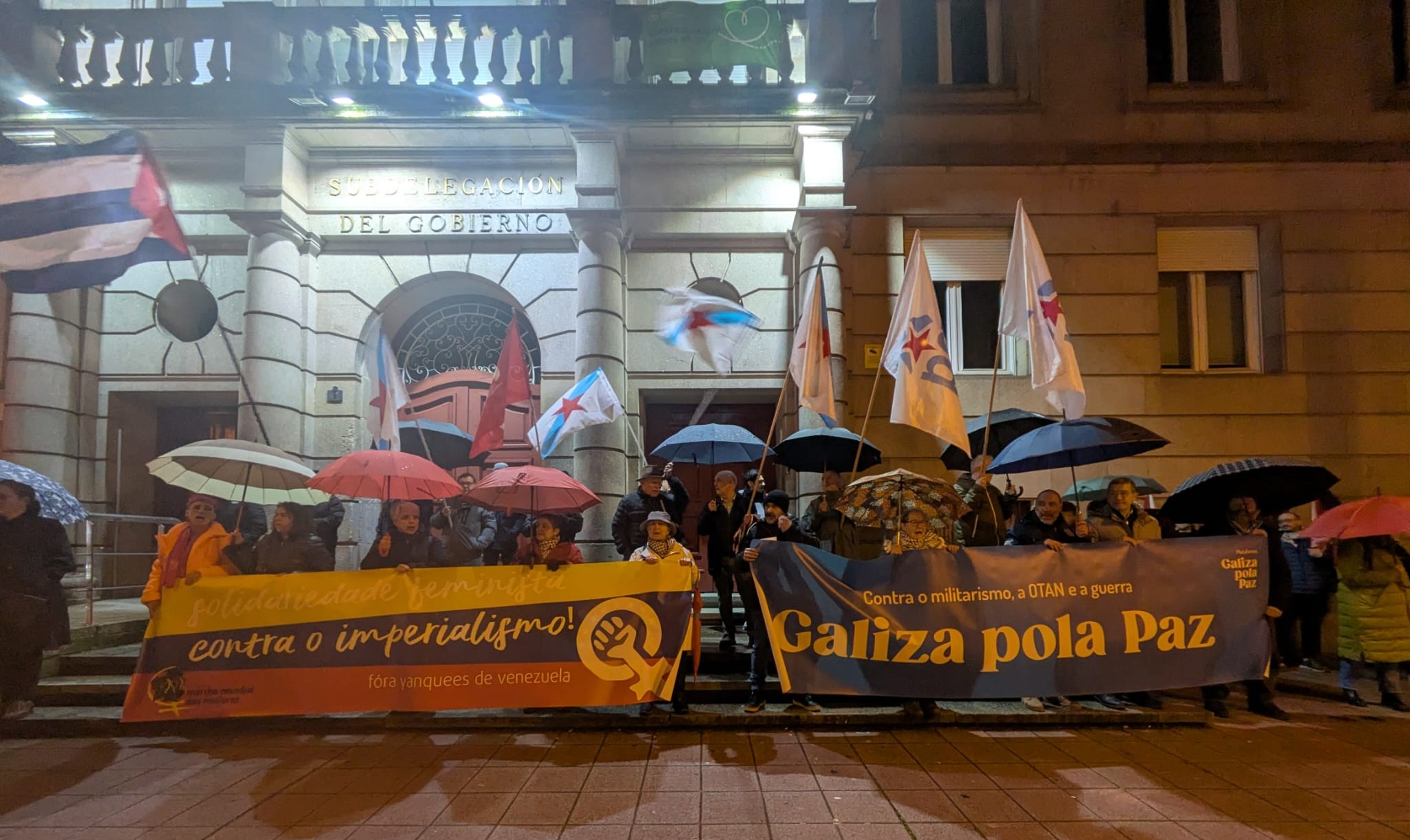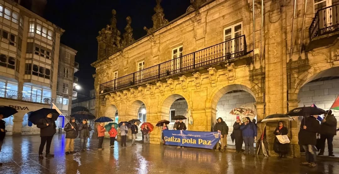 A plataforma Galiza pola Paz convocou hoxe mobilizacións nas principais cidades galegas para denunciar os avances do imperialismo e os plans de rearmamento da Unión Europea, que ameazan a paz mundial e teñen graves consecuencias para o pobo galego. A plataforma denuncia as agresións recentes dos Estados Unidos, a obsesión europea por unha hipotética guerra no leste e exixe a paralización inmediata do aumento do gasto militar.
