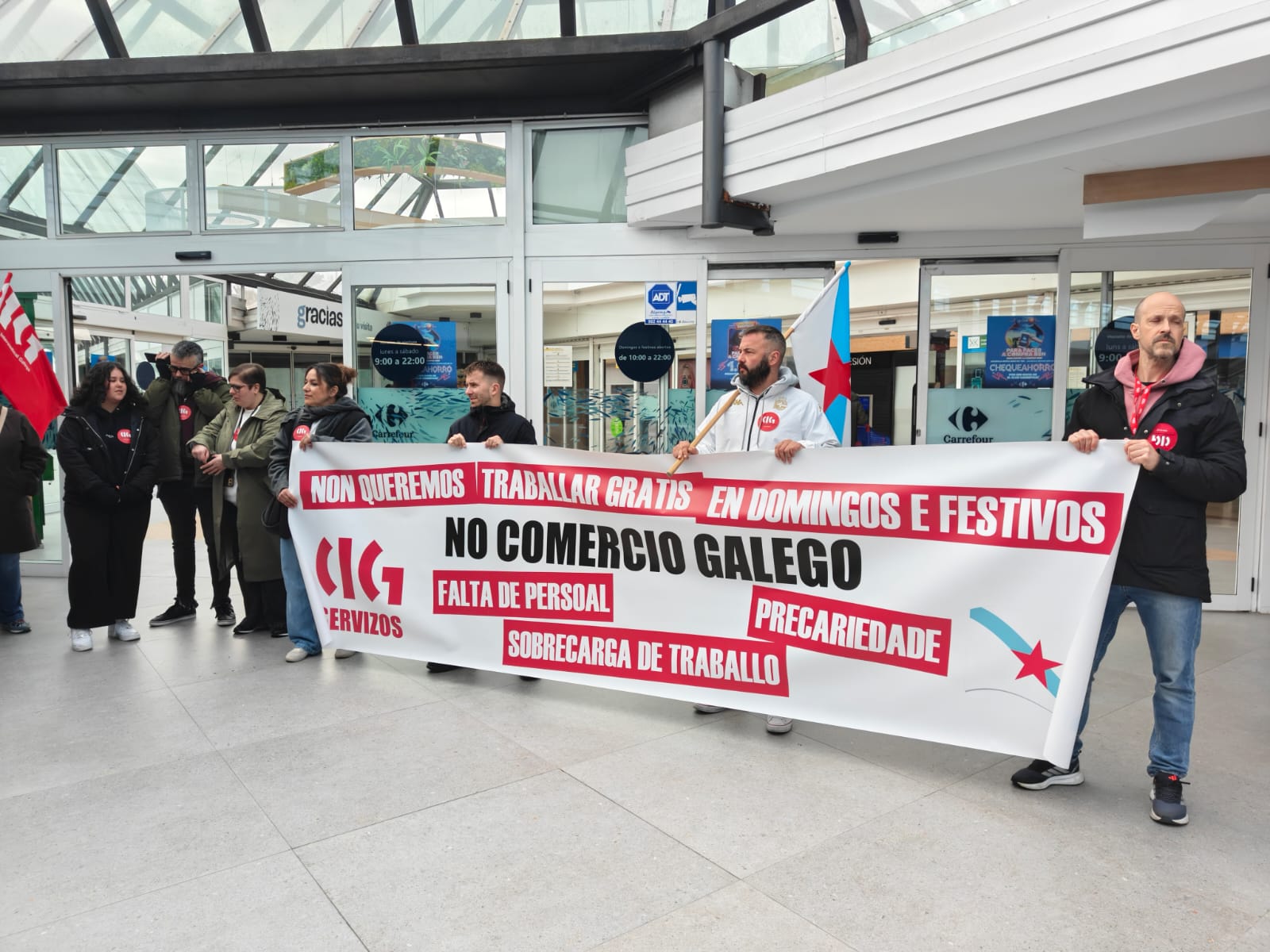 Coincidindo co paro, tamén se realizaron mobilizacións no Carrefour, no IKEA e no MediaMarkt da Coruña, no MARCO de Vigo, no Alcampo de Vilagarcía e Santiago e no CC Carrefour de Lugo. Esta xornada de folga enmárcase na compaña que está a desenvolver a CIG-Servizos contra a precariedade laboral e salarial no sector, que se prolongará no tempo xa que o convenio de grades almacéns remata a súa vixencia a 31 de decembro e o próximo ano tocará negociar a súa actualización.