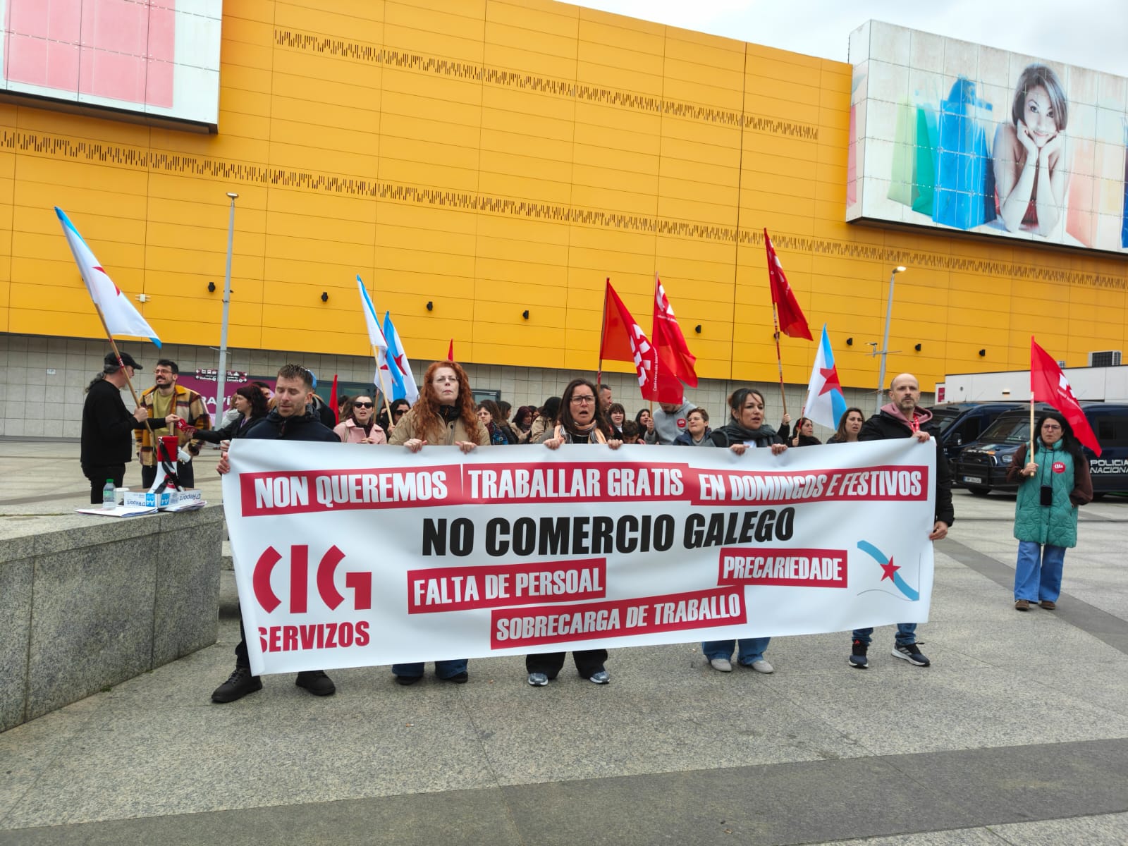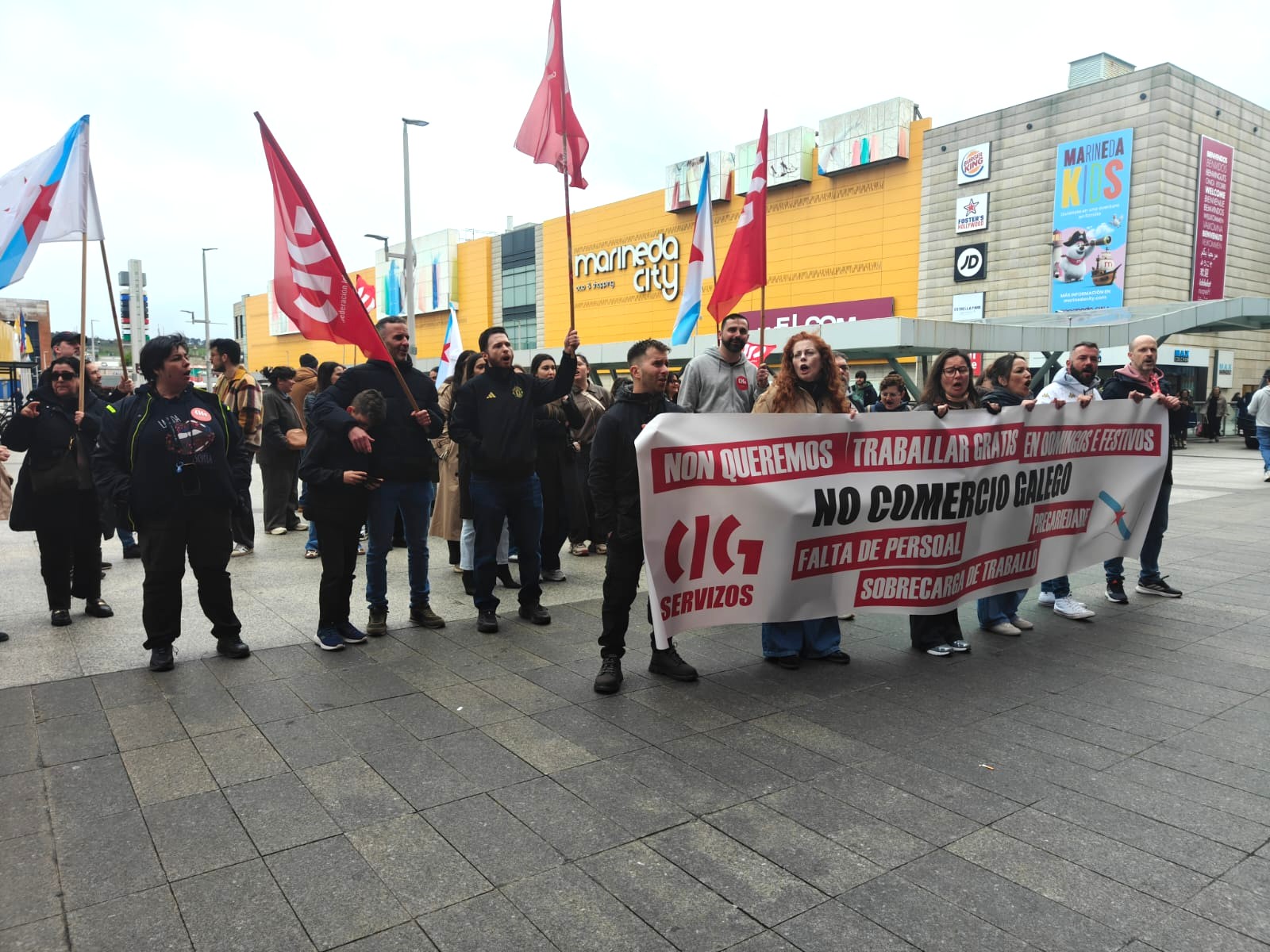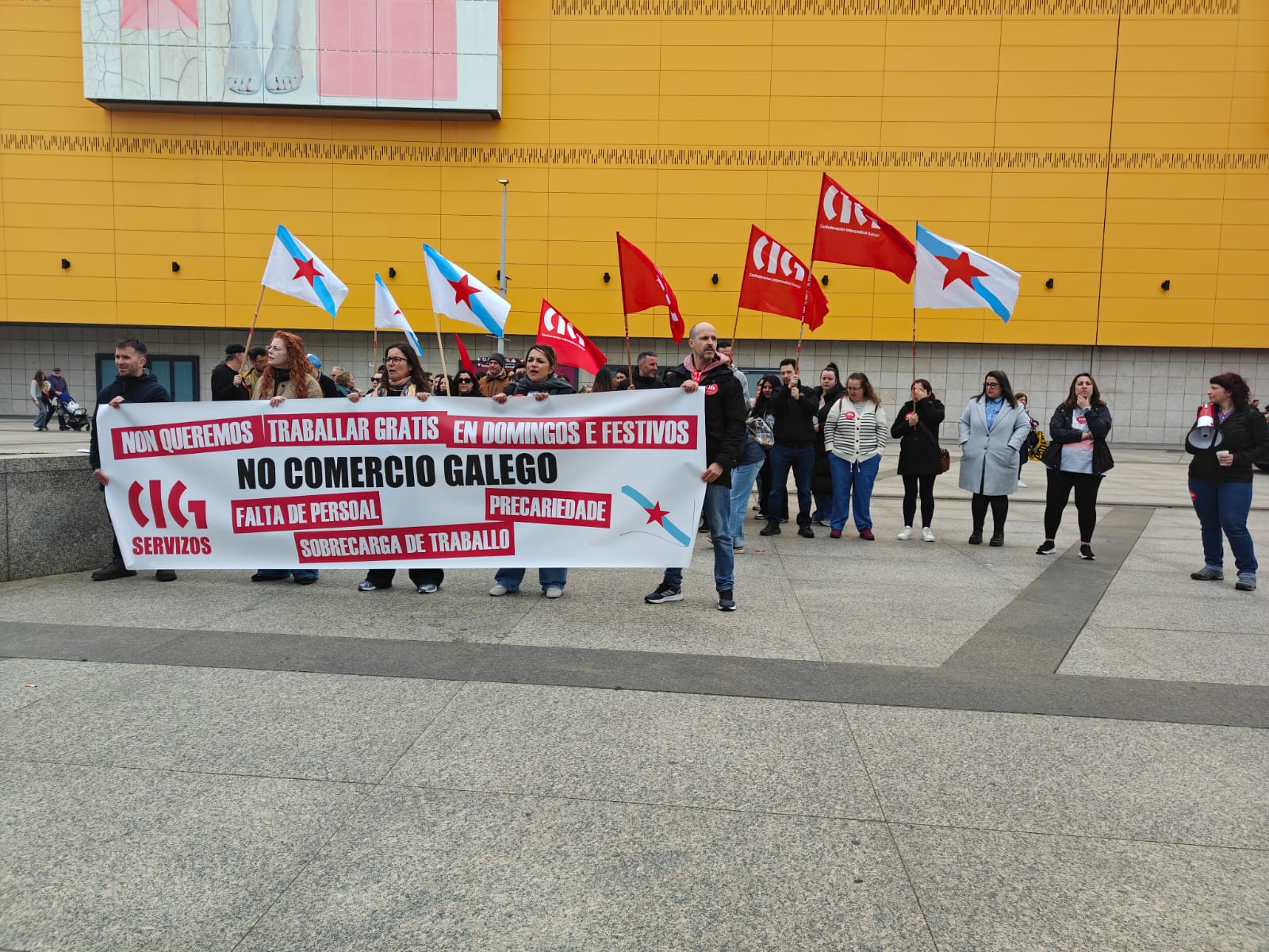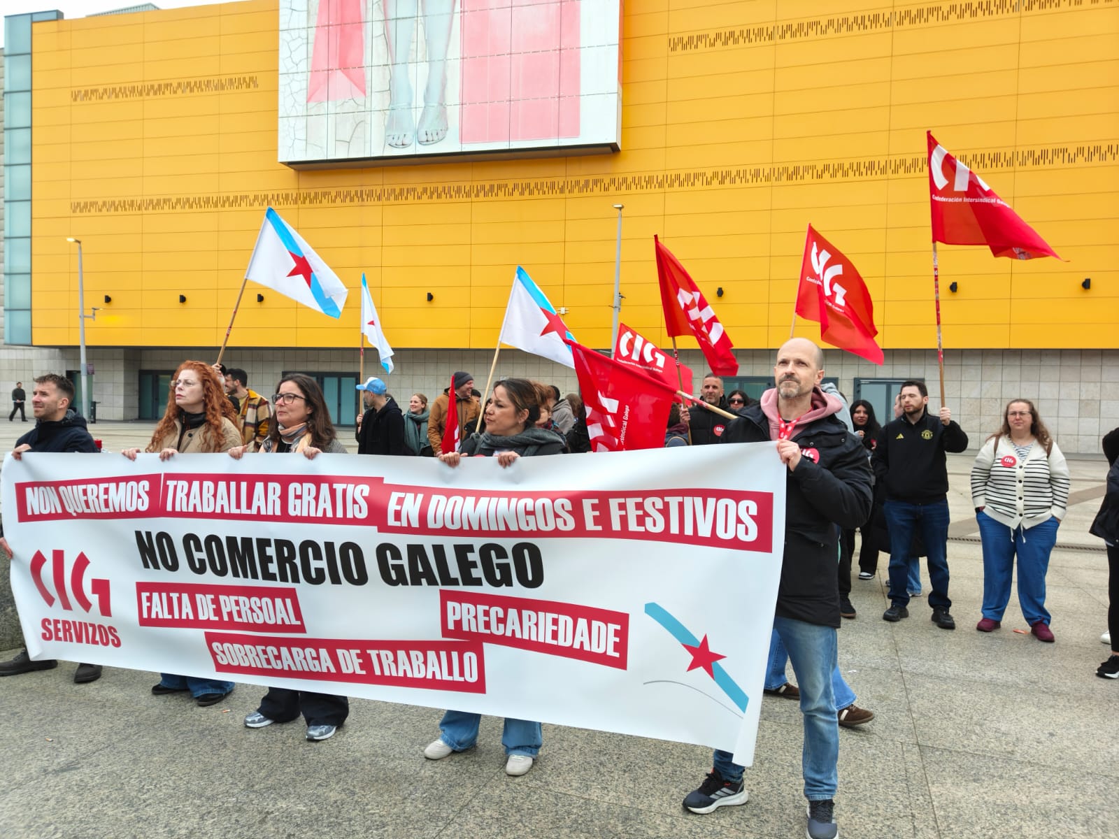 Trátase ademais dun sector altamente feminizado e cunha elevada porcentaxe de contratos a tempo parcial, no que resulta moi difícil conciliar a vida laboral e familiar. No que as compañías impoñen o traballo en domingos e festivos autorizados pola Xunta de Galiza, moitas veces sen compensación e mesmo incumprindo os descansos establecidos pola lei. “Mentres tanto, os salarios apenas superan o SMI e non recoñecen nin a responsabilidade nin a carga real de traballo”, cando as empresas, grandes multinacionais, seguen obtendo beneficios multimillonarios ano tras ano.