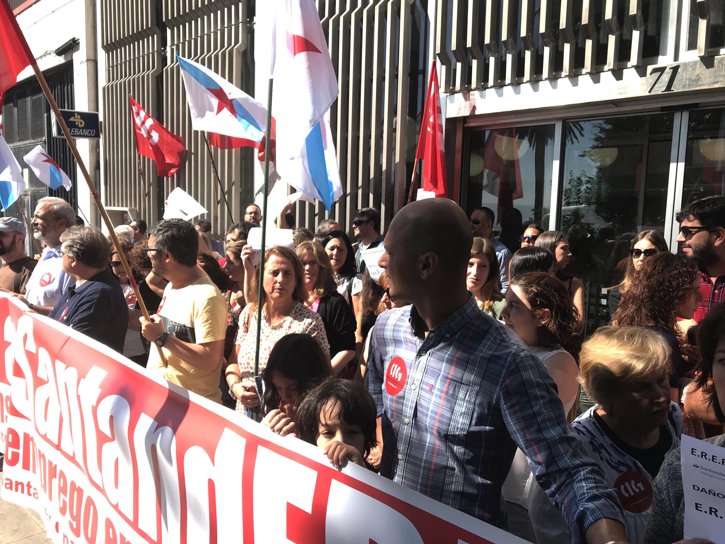 A este respecto, a secretaria da sección sindical da CIG criticou o recorte de persoal nunha empresa como o Banco Santander, que declara beneficios multimillonarios, no que as prolongacións de xornada son unha práctica habitual, que contrata ETT's para suplir as carencias de traballadoras e traballadores, e que fixa uns obxectivos comerciais e unhas cargas de traballo non asumíbeis polos cadros de persoal actuais.