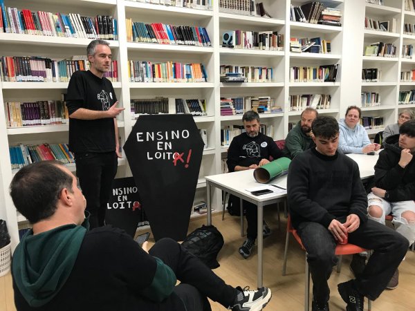 Asemblea aberta, debate sobre a folla de ruta a seguir, elaboración de material reivindicativo, posta en común con representación das familias e alumnado... Son algunhas das actividades propostas que tiveron lugar na tarde do martes no CEIP Concepción Arenal da Coruña, o IES Politécnico de Vigo, o IES Frei Martín Sarmiento de Pontevedra e o IES Daviña Rey de Monforte convertidos nalgo máis que centros educativos.