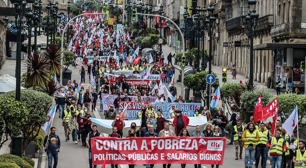 Até 16 localidades acolleron mobilizacións no día do internacionalismo proletario, xornada reivindicativa na que as protestas da CIG volveron ser as máis concorridas. A manifestación central de Vigo foi a máis multitudinaria, a pesar de que o Concello e a Policía Local volvesen manipular os datos para minimizar a asistencia e beneficiar a CCOO e UGT, cuxa marcha congregou menos xente. De igual xeito, os principais medios de comunicación insistiron na súa campaña de invisibilización do principal sindicato do país.