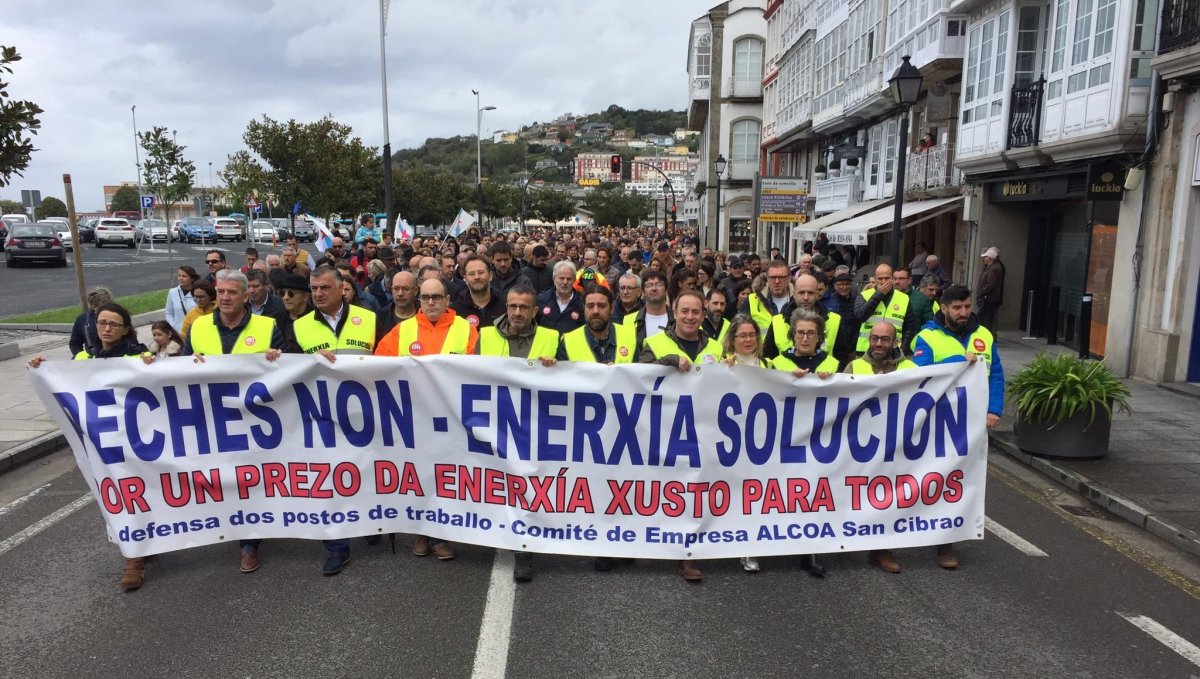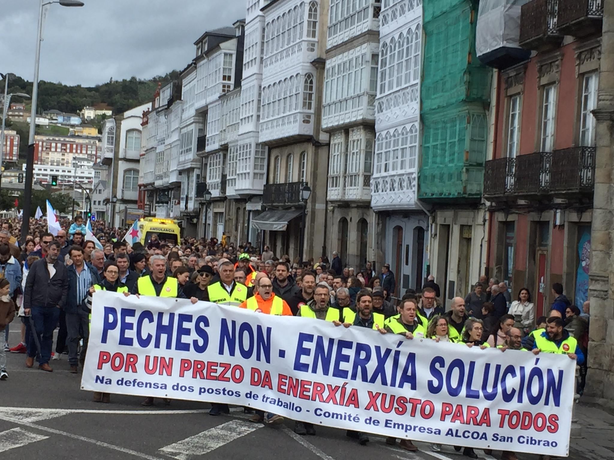 Baixo o lema "Enerxía solución. Polo futuro da Mariña", a marcha, na que tamén participou o secretario xeral da CIG, Paulo Carril, representantes dos Concellos e de entidades sociais e empresariais da comarca, saía pasadas as doce da mañá do antigo Casino de Viveiro e remataba na praza Maior. Alí, o presidente do comité e delegado da CIG, Xosé Paleo, agradeceu a altísima participación da cidadanía da comarca nesta manifestación e no resto de mobilizacións que o persoal de Alcoa está a realizar en defensa do emprego e da actividade produtiva.