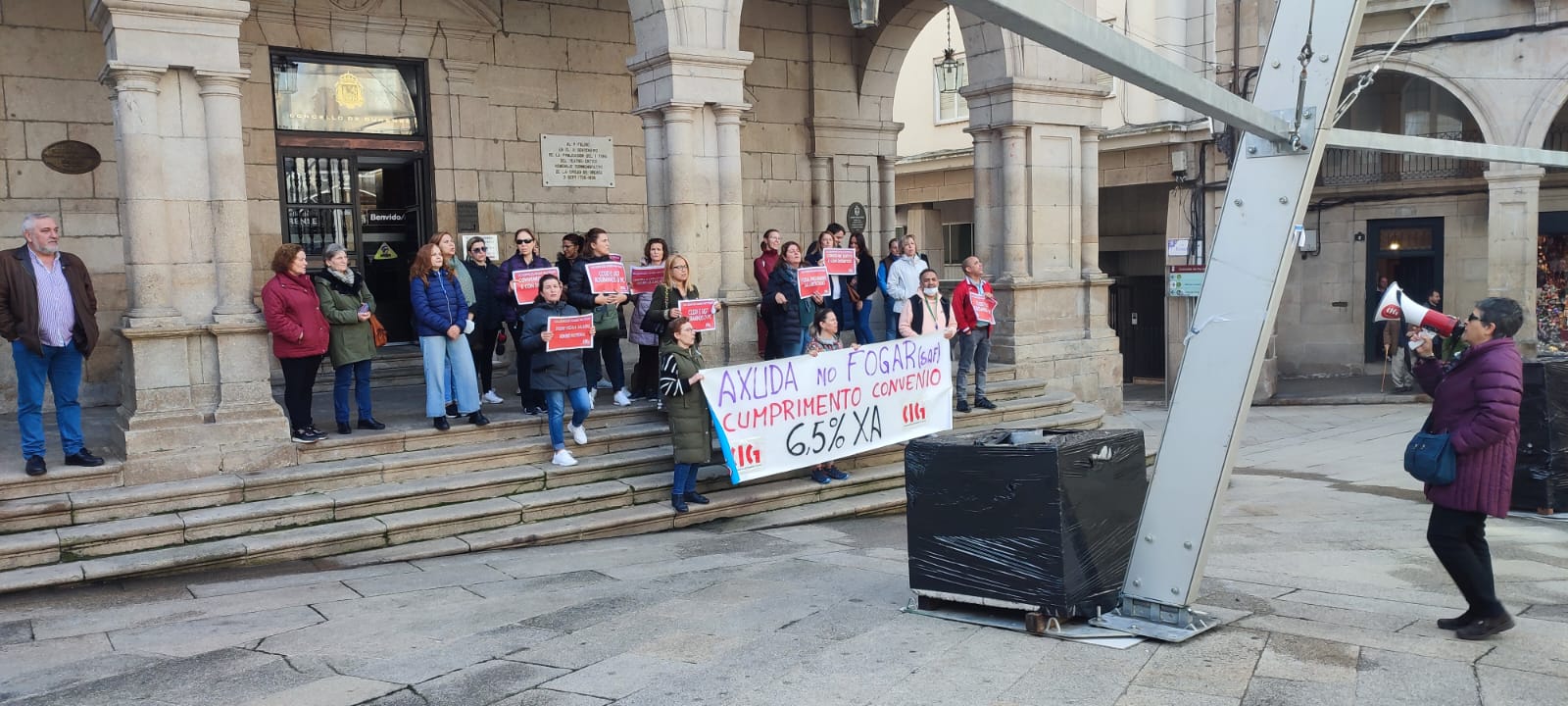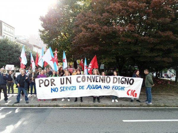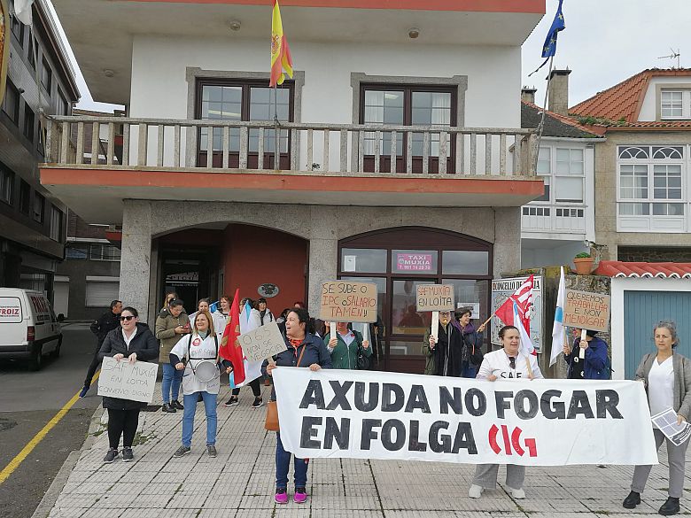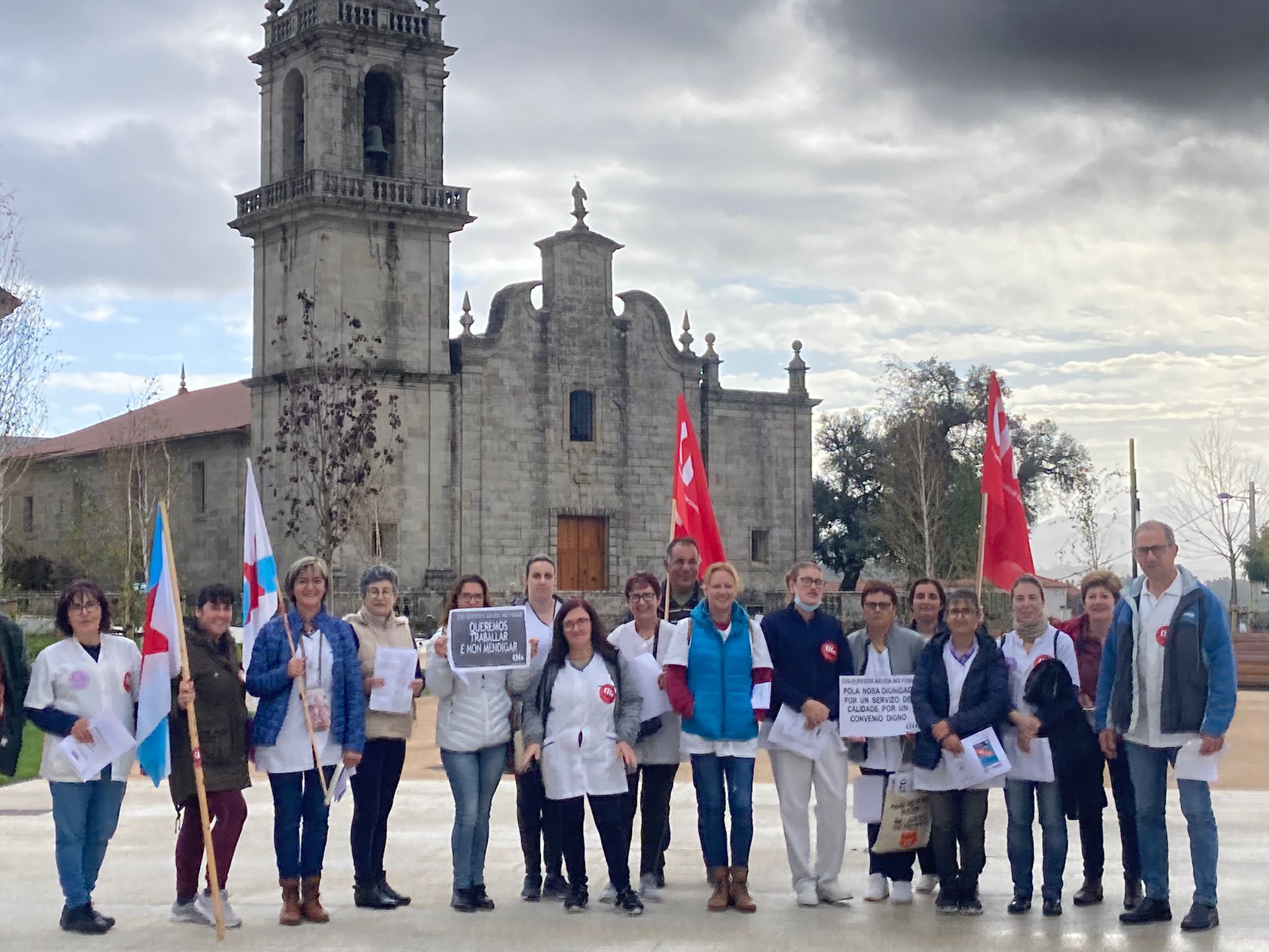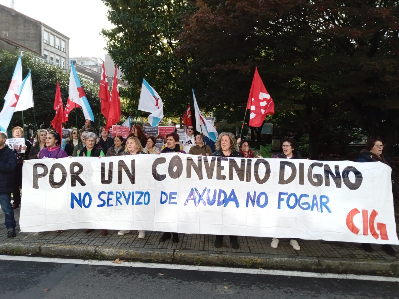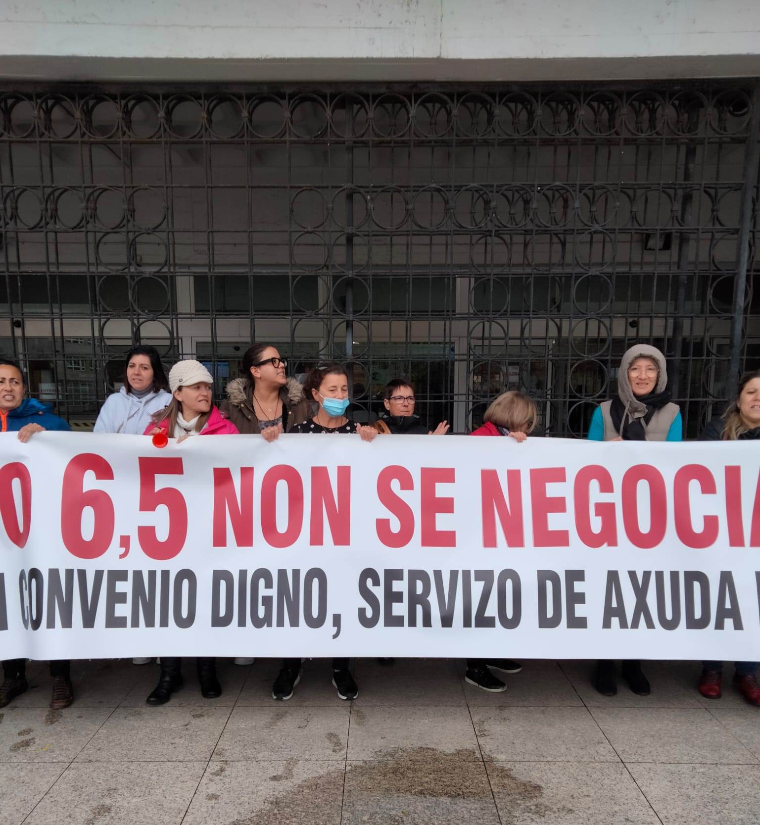 Ao berro de "convenio digno na axuda no fogar", as traballadoras realizaron concentracións, manifestacións e repartos de follas informativas en Cabanas, Pontedeume, Sarria, Ferrol, Miño, As Pontes, Redondela, Moaña, Vigo, Brión, Muxía, A Coruña ou O Rosal.