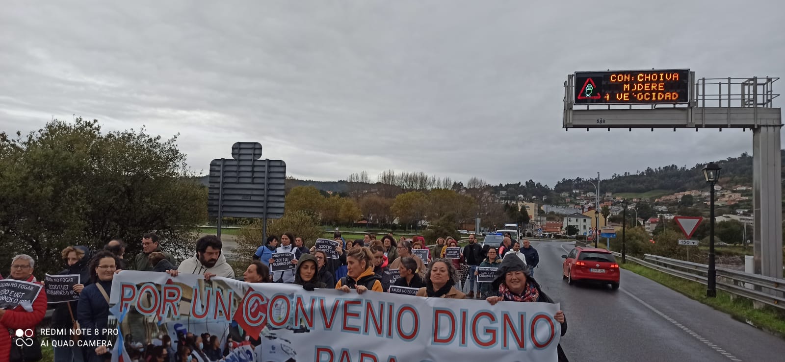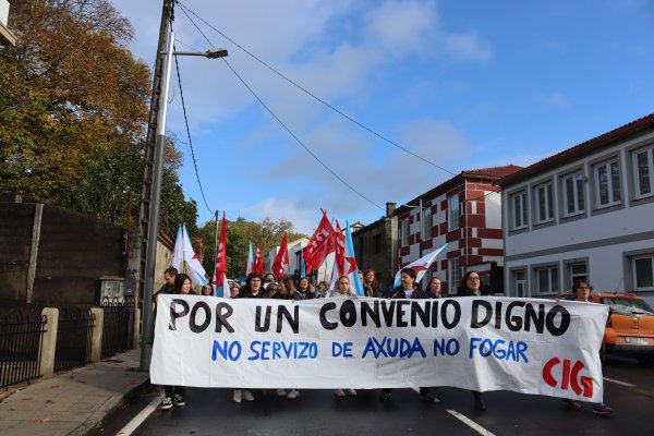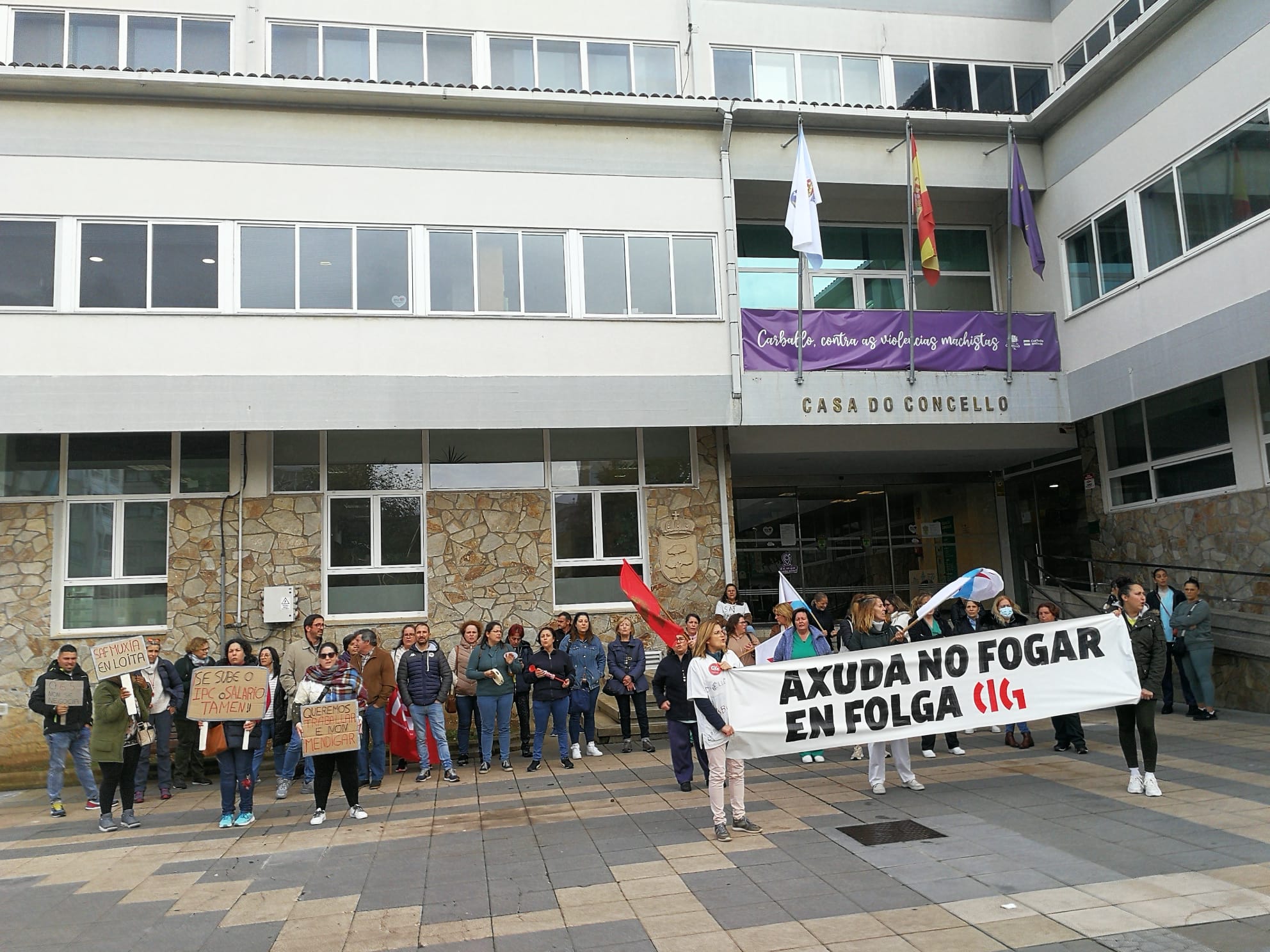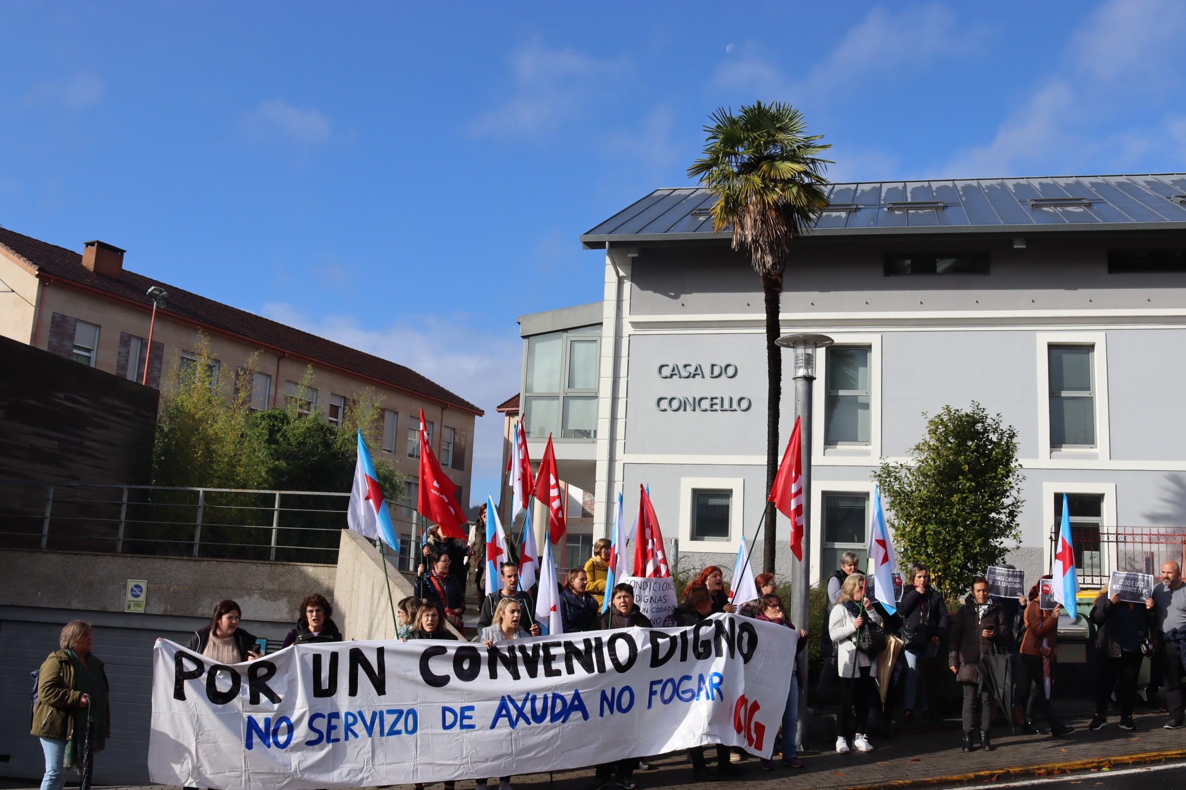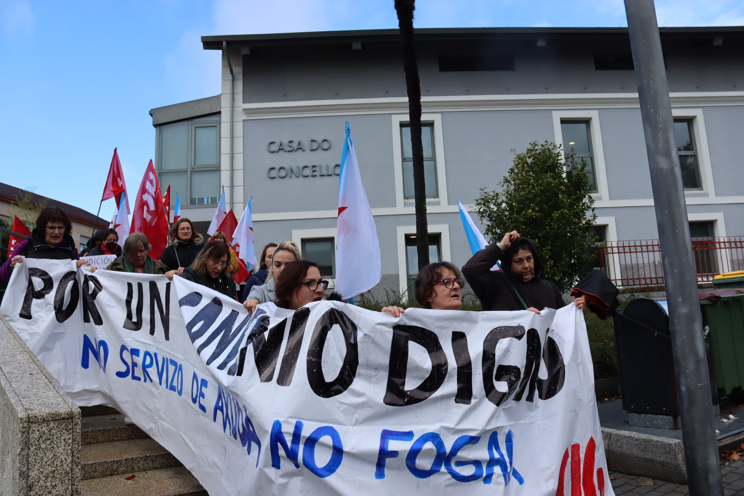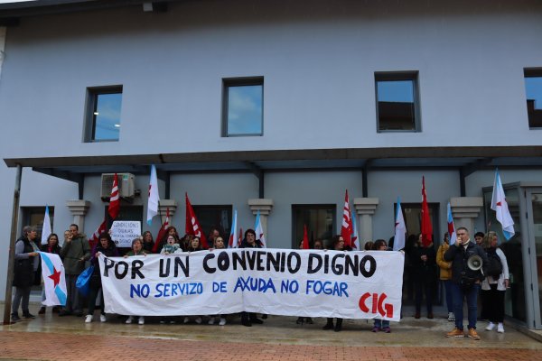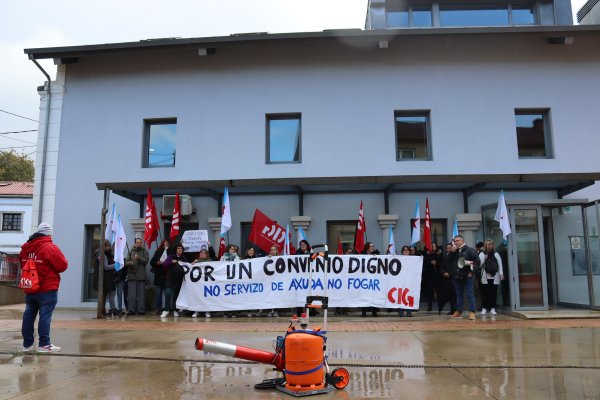 Ao berro de "convenio digno na axuda no fogar", as traballadoras realizaron concentracións, manifestacións e repartos de follas informativas en Cabanas, Pontedeume, Sarria, Ferrol, Miño, As Pontes, Redondela, Moaña, Vigo, Brión, Muxía, A Coruña ou O Rosal.