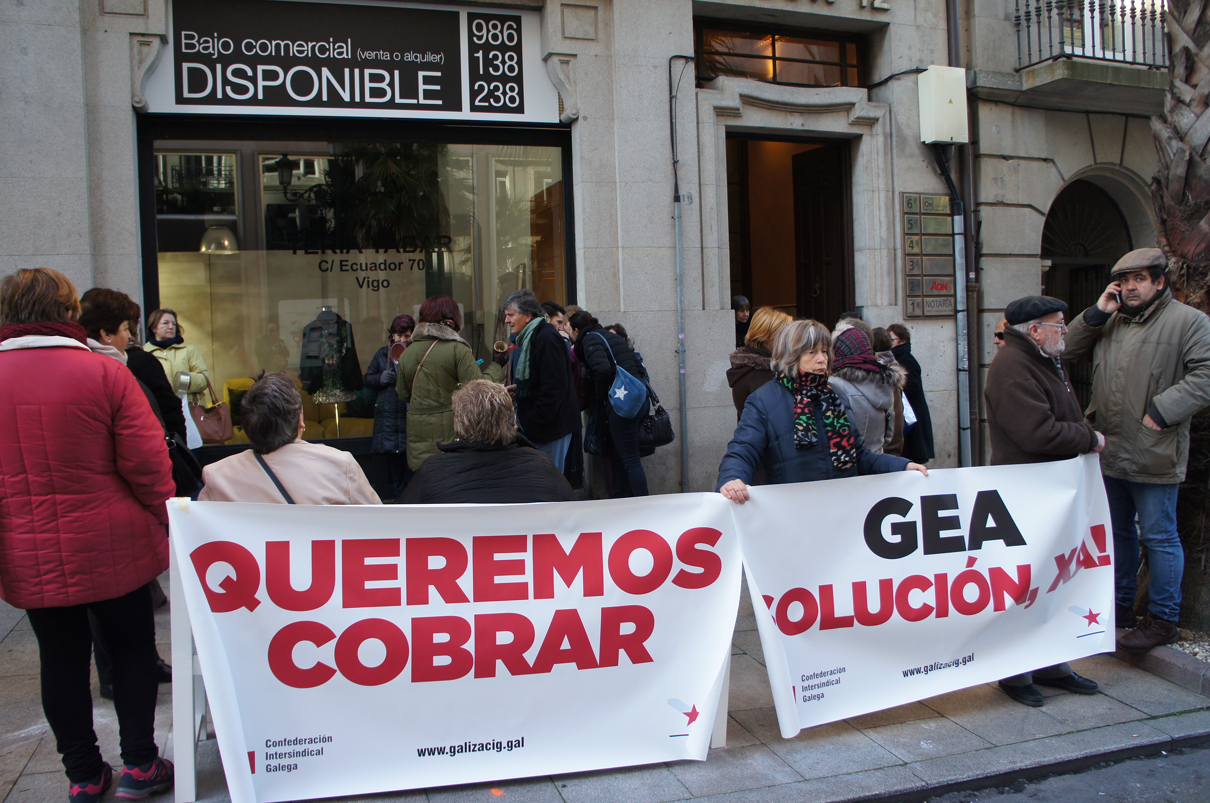 As ex traballadoras/es de Grupo de Empresas Álvarez (GEA) asesoradas pola CIG desenvolveron esta mañá unha intensa xornada de mobilizacións en Vigo para reclamar o pago dos terreos que ocupaba a fábrica de louza en Cabral e Coruxo. As afectadas/os protestaron diante dos Xulgados e ás portas dunha das inmobiliarias implicadas no proceso de compra do solo onde se ubicaba a empresa.