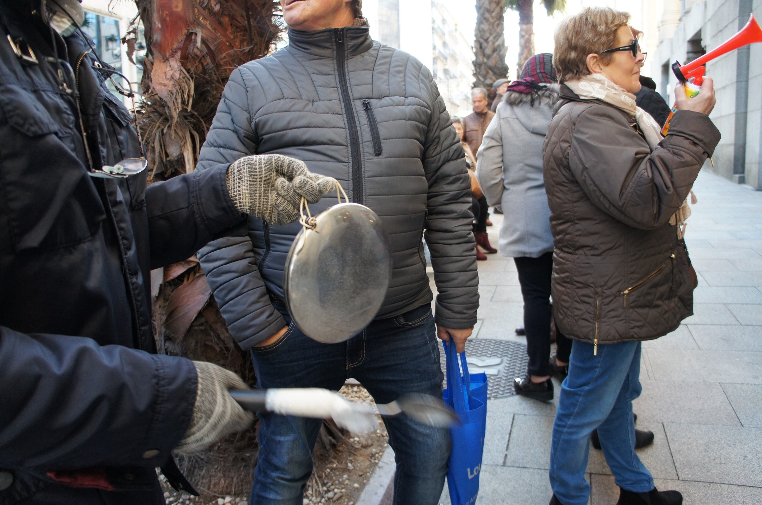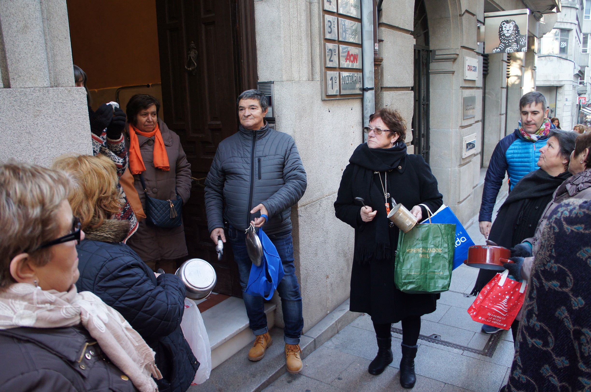 A continuación trasladáronse até o número 12 da rúa Colón para continuar coas mobilización, esta vez ás portas da sede da inmobiliaria Residencial El Rocío, unha das implicadas no proceso de compra do solo sobre o que se levantaba a empresa. Alí despregaron dúas faixas cos lemas “Queremos cobrar” e GEA solución xa” e seguiron a facer ruído golpeando todo tipo de utensilios.