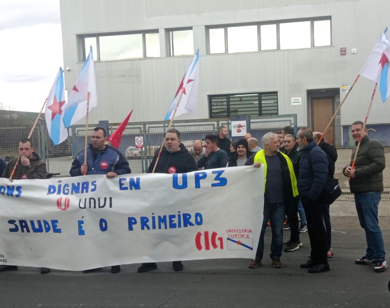 Despois desta mobilización a CIG-Industria levou a cabo unha protesta de 14:00 a 15:00 horas diante das instalacións de UNVI, empresa dedicada á fabricación de autobuses con sede no polígono de San Cibrao das Viñas para reclamar o acondicionamento da nave anexa habilitada pola compañía o pasado verán.