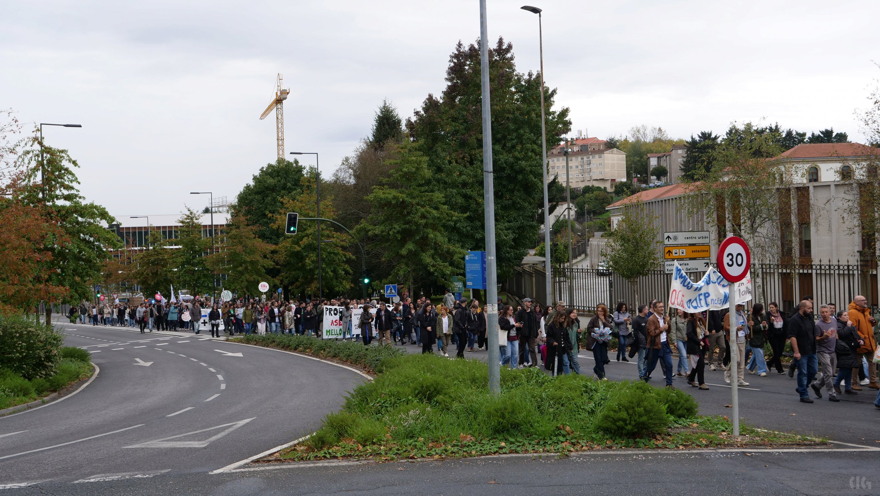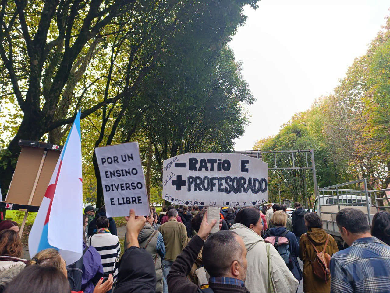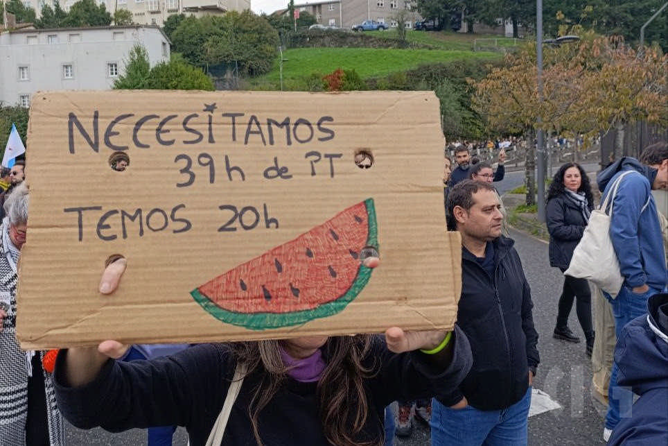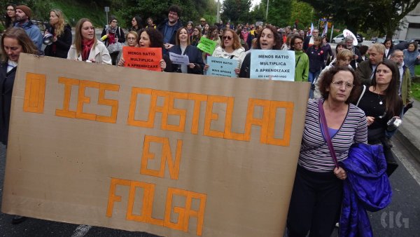 A primeira xornada da folga docente neste mes de outubro, a segunda no que vai de curso, decorreu cun importante seguimento de profesorado, á espera de que se contrasten os datos de participación a partir do vindeiro xoves. O persoal docente, que estes días estivo moi activo nos propios centros colgando faixas reivindicativas e nas redes sociais, volveu responder masivamente á chamada de “virar San Caetano”, unha acción consistente en rodear o edificio administrativo da Xunta e que ante a afluencia de persoas tivo que ver modificado o percorrido previsto.