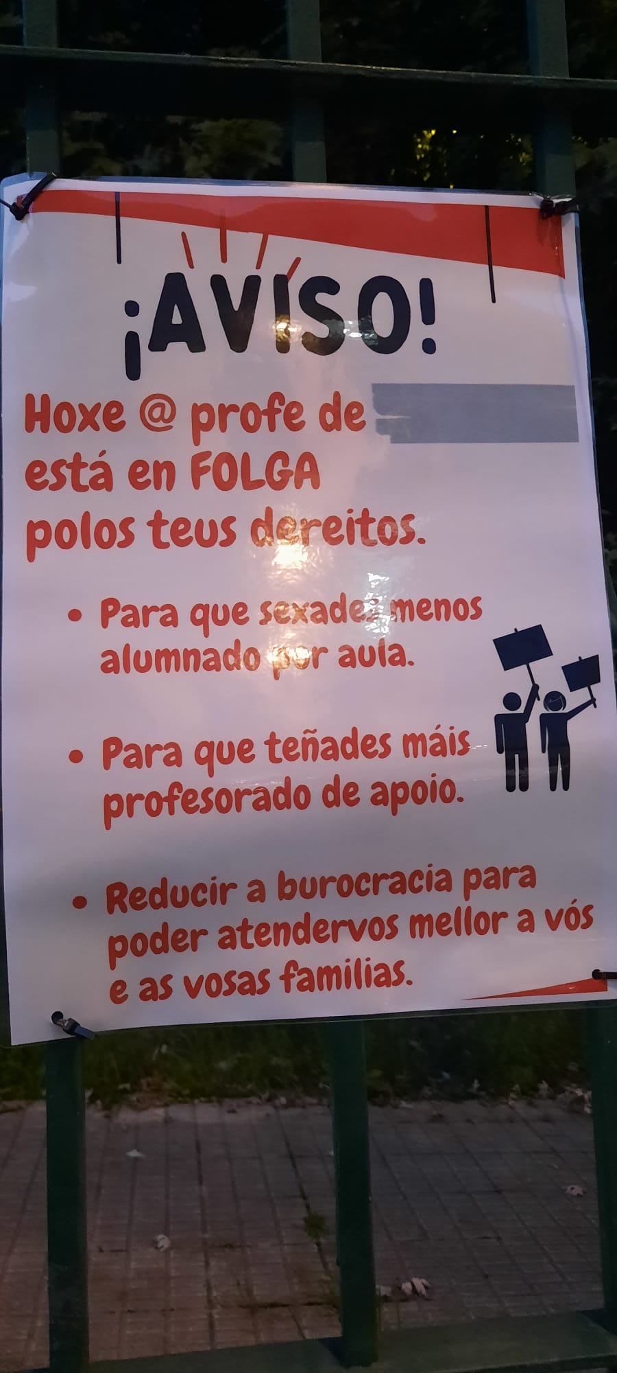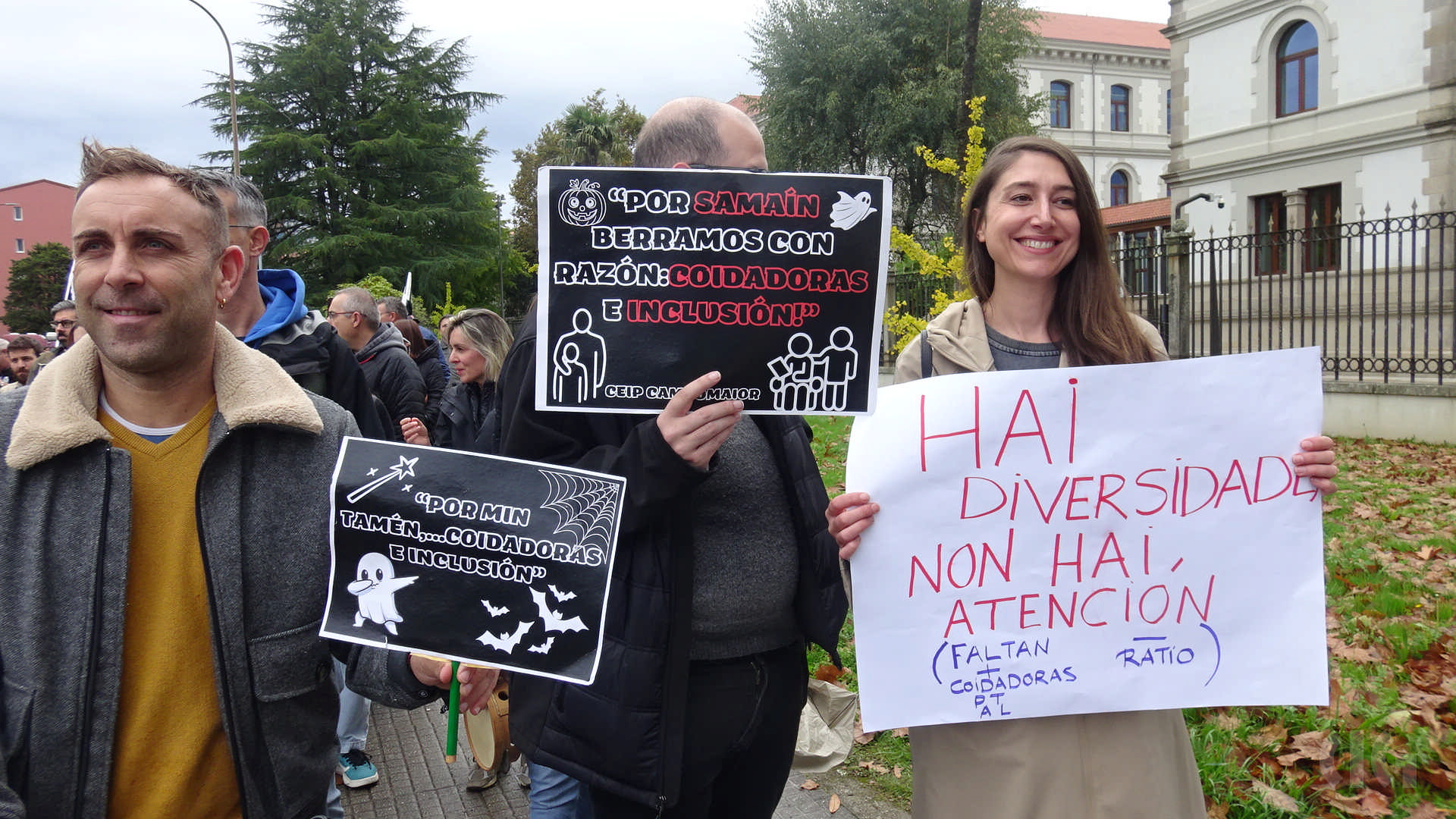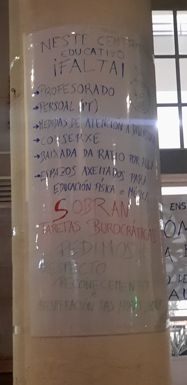 Ademais, Arroxo, referiuse ás vésperas do Samaín, “unha data que na nosa cultura significa unha unión entre o mundo dos vivos e o dos mortos. Sabemos onde lle gustaría situar ao Partido Popular o ensino público pero tamén sabemos o que queren o profesorado, o alumnado e as familias: un ensino público vivo, de calidade, galego e integrador. Polo tanto seguiremos visibilizando a fartura do profesorado estes dous días e a partir do xoves nos nosos centros de traballo porque a responsabilidade docente é construír unha sociedade integradora e plural”.