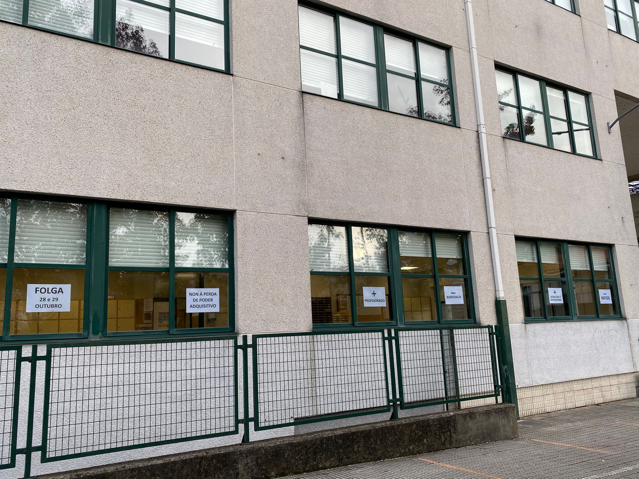 Despois da manifestación en Compostela, o profesorado continúa coa acción reivindicativa protagonizando peches en varios centros educativos para visibilizar o conflito laboral e social protagonizado polo persoal docente galego. Os peches estanse realizando no CEIP Alborada da Coruña, no IES Lucus Augusti de Lugo, no CEIP Amadeo Rodríguez Barrosa de Ourense, no IES Valle Inclán de Pontevedra, no IES de Canido en Ferrol e no CEIP Reibón de Moaña.