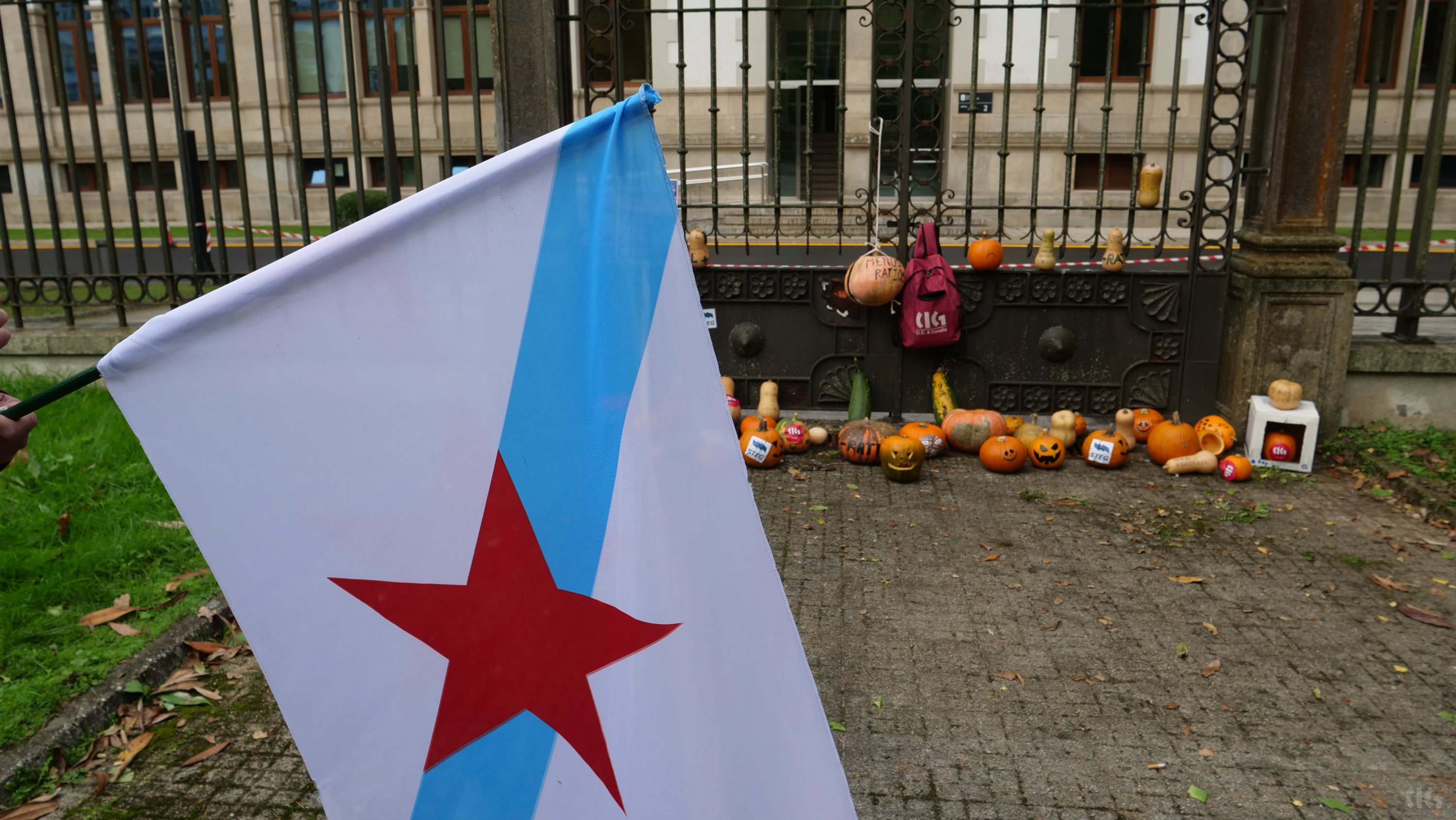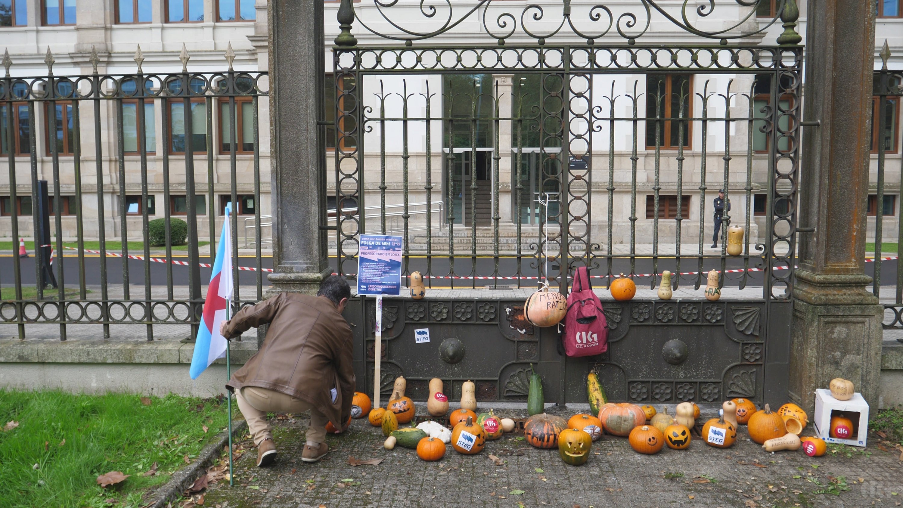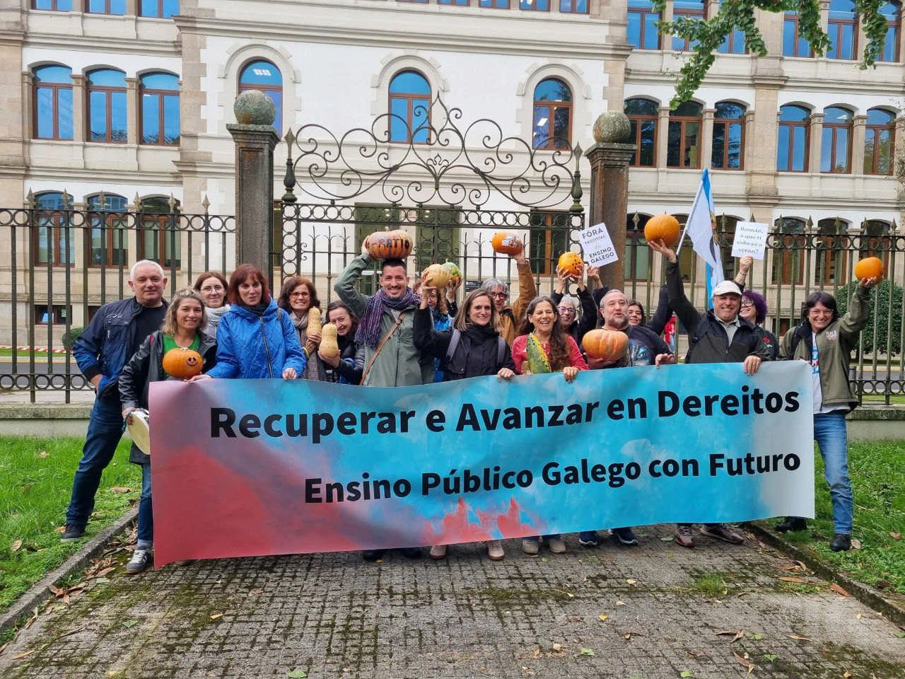 Durante a protesta moitas persoas portaron cabazas que se depositaron xusto diante da fachada da Consellaría de Educación. “Trouxémoslle cabazas ao conselleiro -engadiu- porque simboliza o suspenso por parte do profesorado porque non sabe sumar cando di que medio docente máis medio docente son dous docentes, suspende tamén na atención á diversidade ao pretender que unha persoa orientadora atenda a máis de 300 rapaces ou rapazas ou non dota os centros con especialistas de Pedagoxía Terapéutica e Audición e Linguaxe, cando non sabe colocar no mapa os coles do rural porque os deixa abandonados ou en lingua galega por someter ao ostracismo á nosa lingua”.