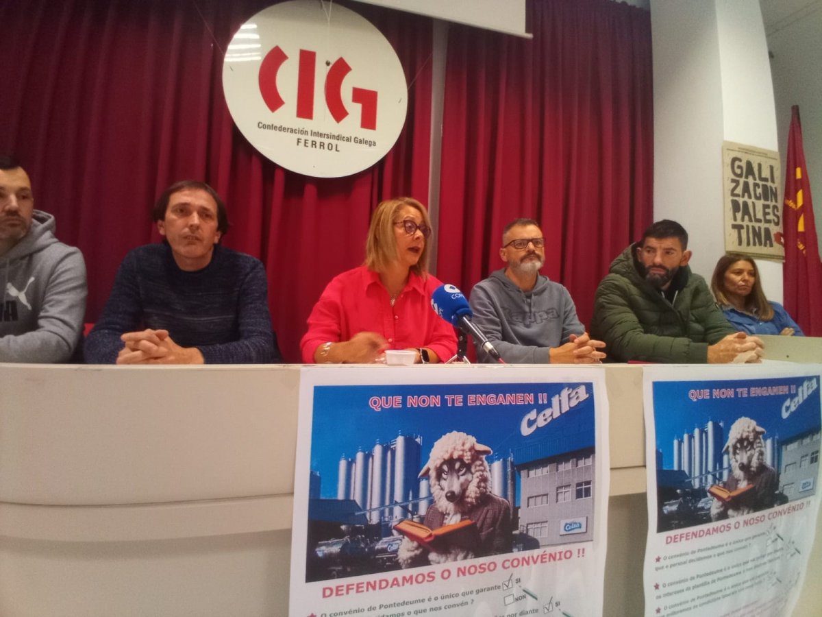 Grupo Celta comprende as empresas Leche Celta SLU, Iberleche e Lactogal Productos Alimentares e conta con plantas en Andrade (Pontedeume), Meruelo (Santander) e Ávila, así como unha oficina comercial en Barcelona. “Nós entendemos que non procede a negociación dun convenio de empresa que no seu ámbito de aplicación incluía o centro de Pontedeume, porque aquí xa existe un convenio colectivo estatutario en vigor e a lei prohibe esta duplicidade”, explicou Francisco Cartelle, da Executiva Confederal da CIG.