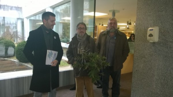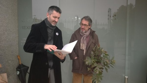 No acto de entrega no rexistro estaba Anxo Pérez Carballo, en representación da CIG; Fins Eirexas, en representación de ADEGA e Manuel Dacal, en representación de FRUGA.