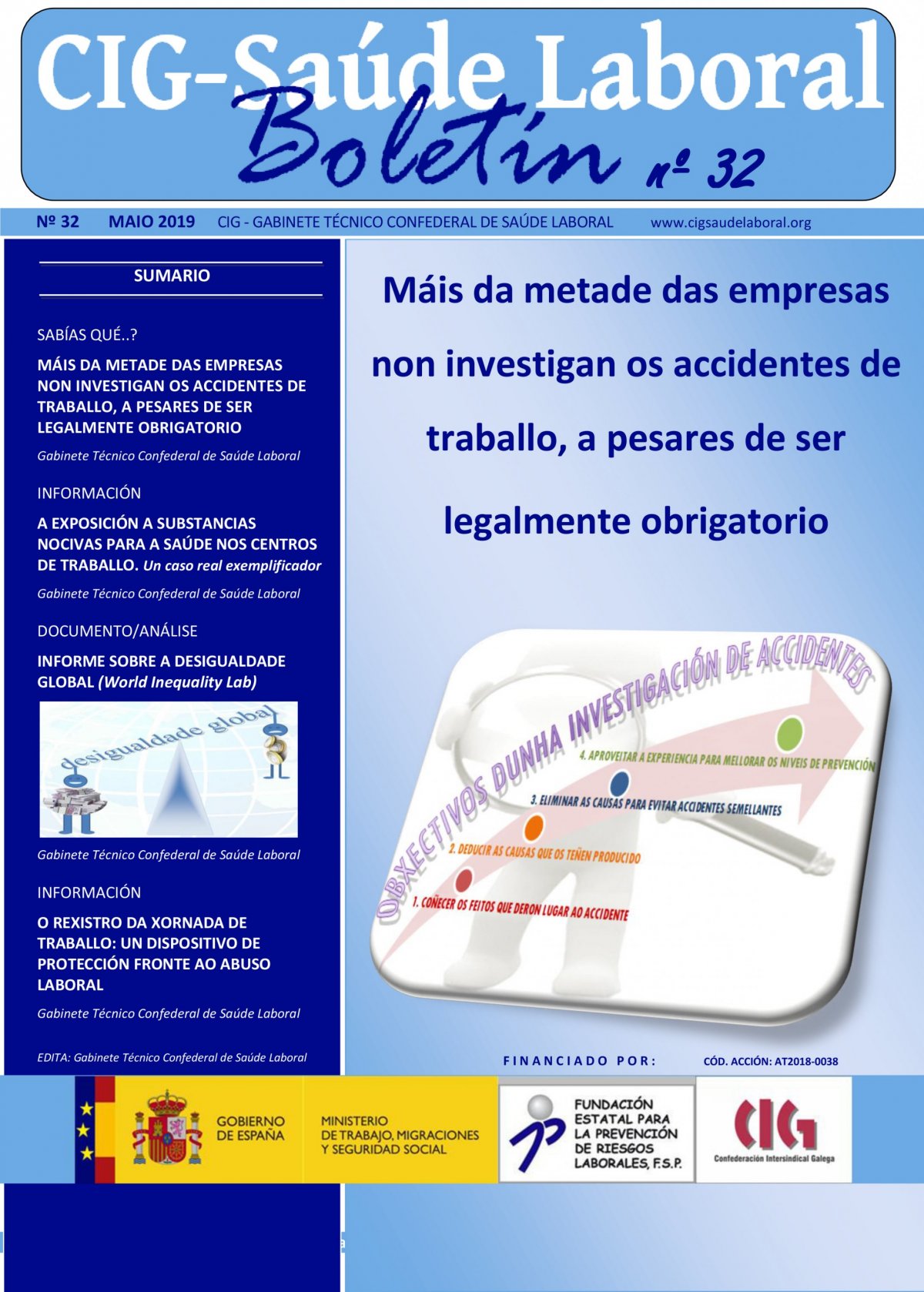Xunto a esta cuestión, a publicación recolle tamén información sobre “A exposición a substancias nocivas para a saúde nos centros de traballo. Un caso real exemplificador” e un documento de análise a partir do último informe publicado do “World Inequality Report” sobre a desigualdade mundial e a distribución da riqueza entre os países máis ricos e os países emerxentes nos últimos corenta anos.