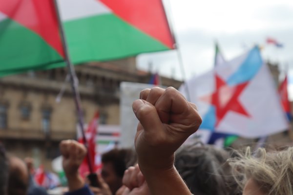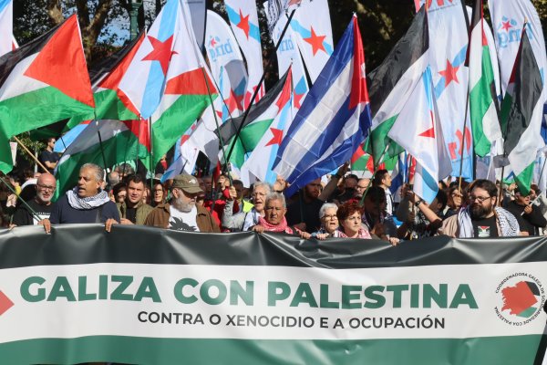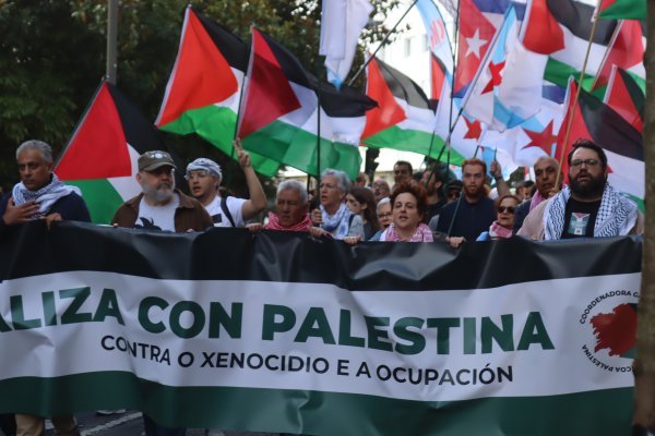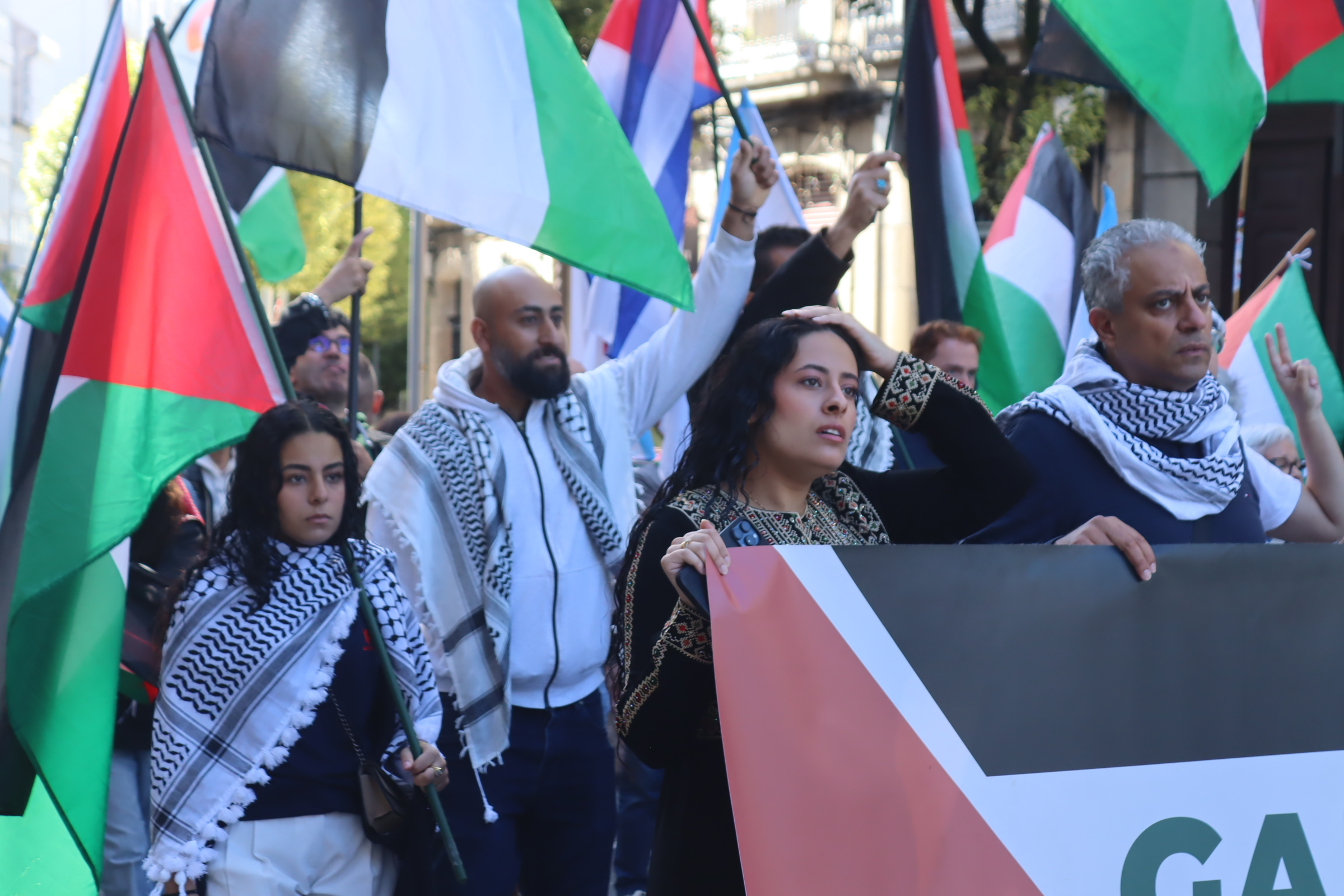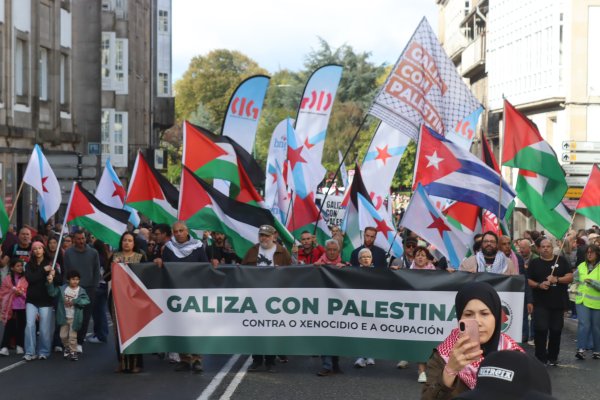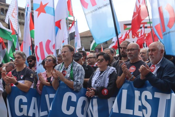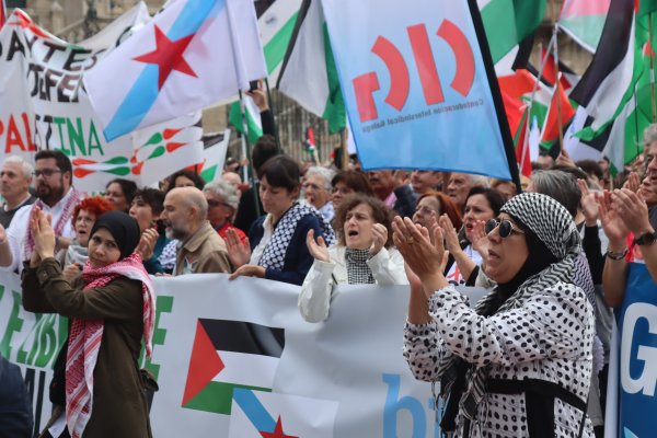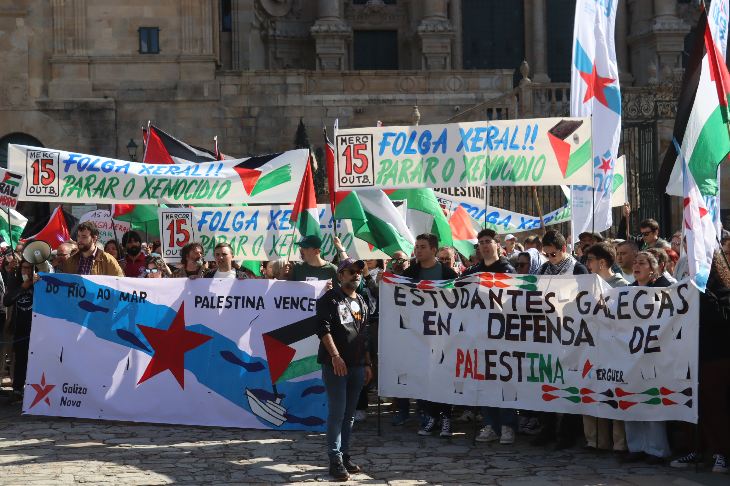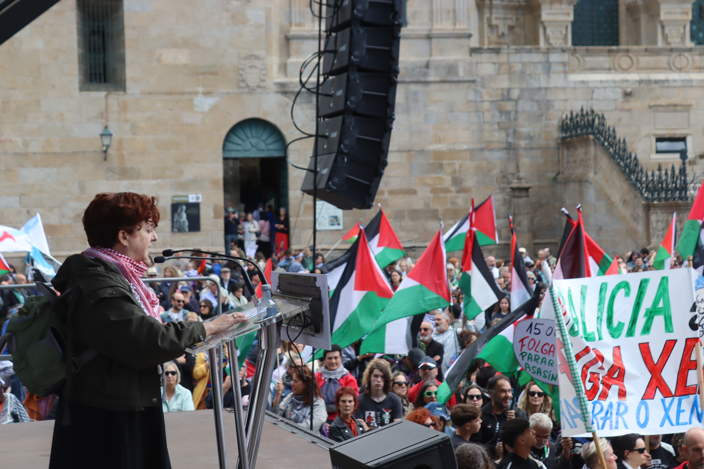 Máis de 80.000 persoas tomaron hoxe as rúas de Santiago de Compostela para rexeitar o xenocidio e a ocupación de Palestina nunha xornada na que o pobo galego protagonizou a manifestación solidaria máis numerosa en apoio da causa palestina da historia do noso país. A manifestación, convocada pola Coordinadora Galega de Solidariedade coa Palestina baixo o lema 'Galiza con Palestina, 2 anos de xenocidio, 77 de ocupación', rematou nunha praza do Obradoiro totalmente ateigada ao berro de “Dende o río até o mar, Palestina vencerá”, “O terrorismo é o sionismo” ou “Netanyahu asasino”.