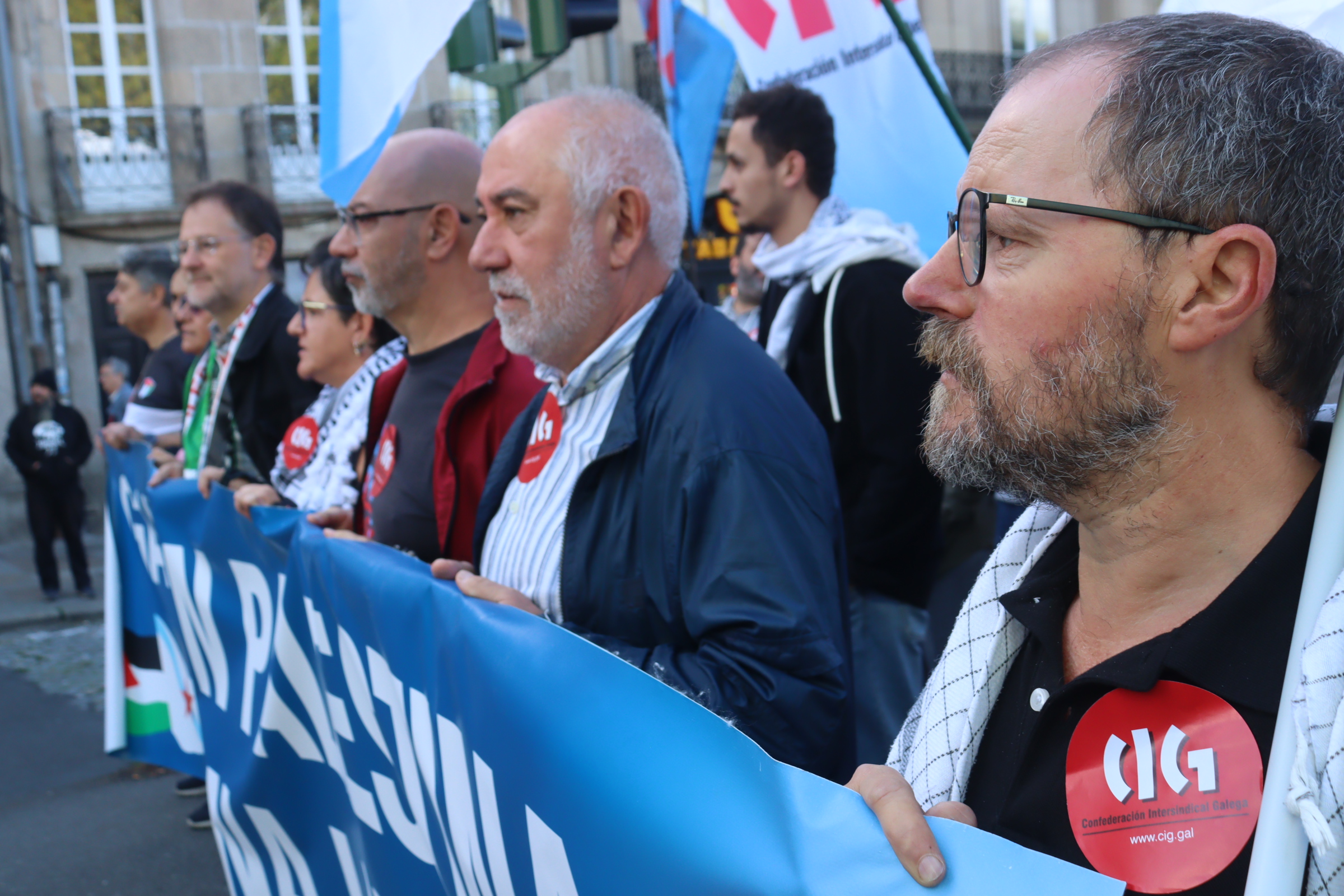 -Denunciar as criminais accións militares iniciadas o 7 de outubro de 2023 polo Estado sionista de Israel, principalmente na Faixa de Gaza, mais tamén no resto dos territorios ocupados da Palestina. Coa mesma rotundidade denunciamos o crime da ocupación ilegal de terras e desprazamento forzoso da poboación palestina que dá orixe mesma ao Estado de Israel.
