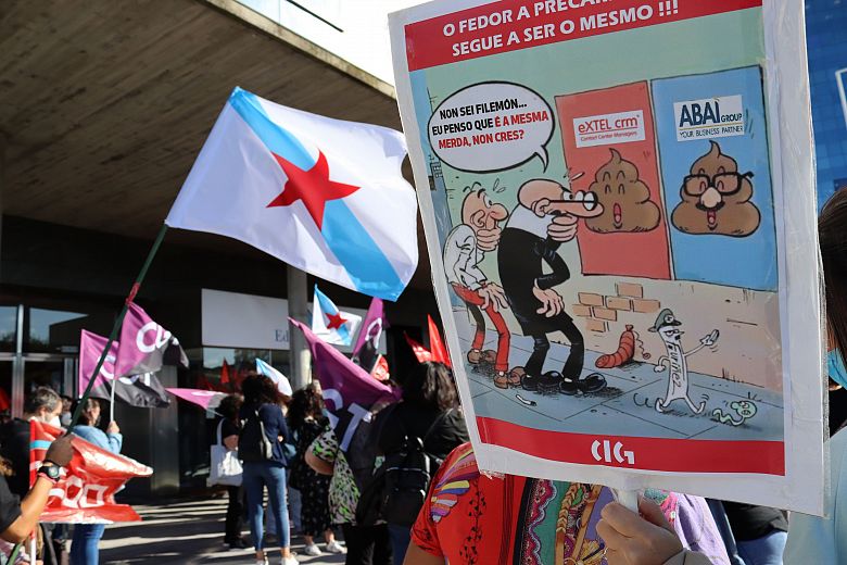 "A pesar do lavado de imaxe que a empresa pretende facer, a situación dende que Extel foi adquirida por Abai Group volveuse peor en todos os aspectos", denuncia a sección sindical da CIG. "Dedican moito esforzo a emitir notas de prensa asegurando que non hai conflitividade, cando nunca tantas denuncias se presentaron, nin as compañeiras e compañeiros tiveron tantas ganas de mobilizarse". Unha aseveración confirmada polo seguimento da folga e a participación na concentración que tivo lugar ao mediodía diante das oficinas de Abai.