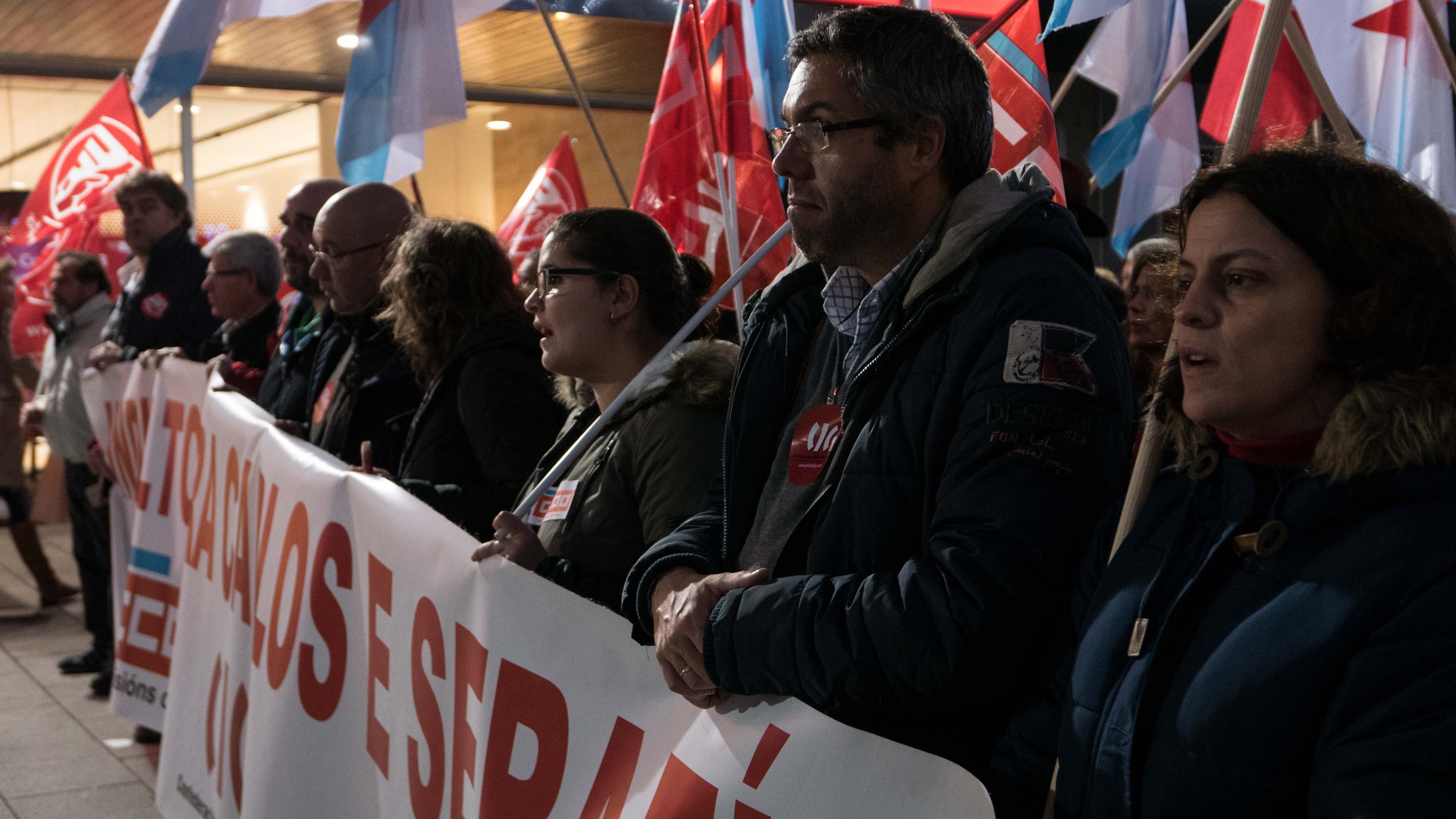 O acto rematou coa lectura dun comunicado por parte do secretario comarcal da CIG de Vigo, Alberto Gonçalves, que lembrou que o Parlamento galego vén de emitir unha declaración institucional na que se demanda a concesión do indulto parcial para os dous traballadores, o que evitaría o seu ingreso na cadea.
