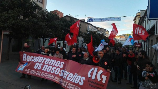 Na protesta denunciouse que nos últimos oito anos os diferentes gobernos do PP e do PSOE atacaron por medio de reformas lexislativas os principais dereitos conquistados pola clase traballadora, que é preciso derrotar. Por iso, dende a Unión Comarcal chaman a continuar na loita e a participar nas manifestacións convocadas pola central sindical co gallo do Día Internacional da Clase Obreira.
