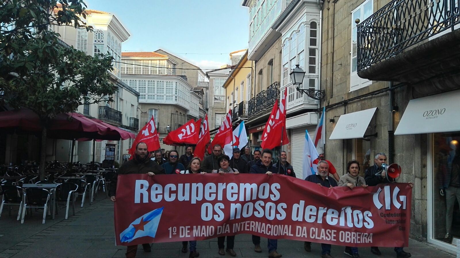 No marco das accións previas ao Primeiro de Maio e dentro da campaña pola recuperación dos dereitos roubados, a CIG de Lugo-A Mariña realizou unha mobilización este mércores polas rúas de Monforte para esixir a derrogación das reformas antiobreiras.