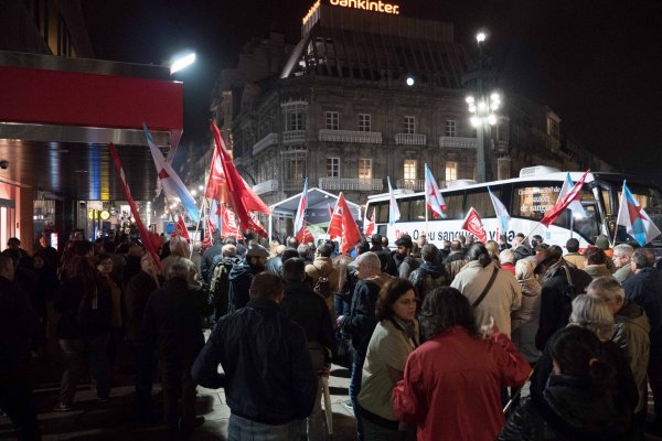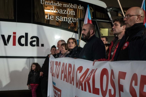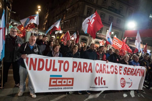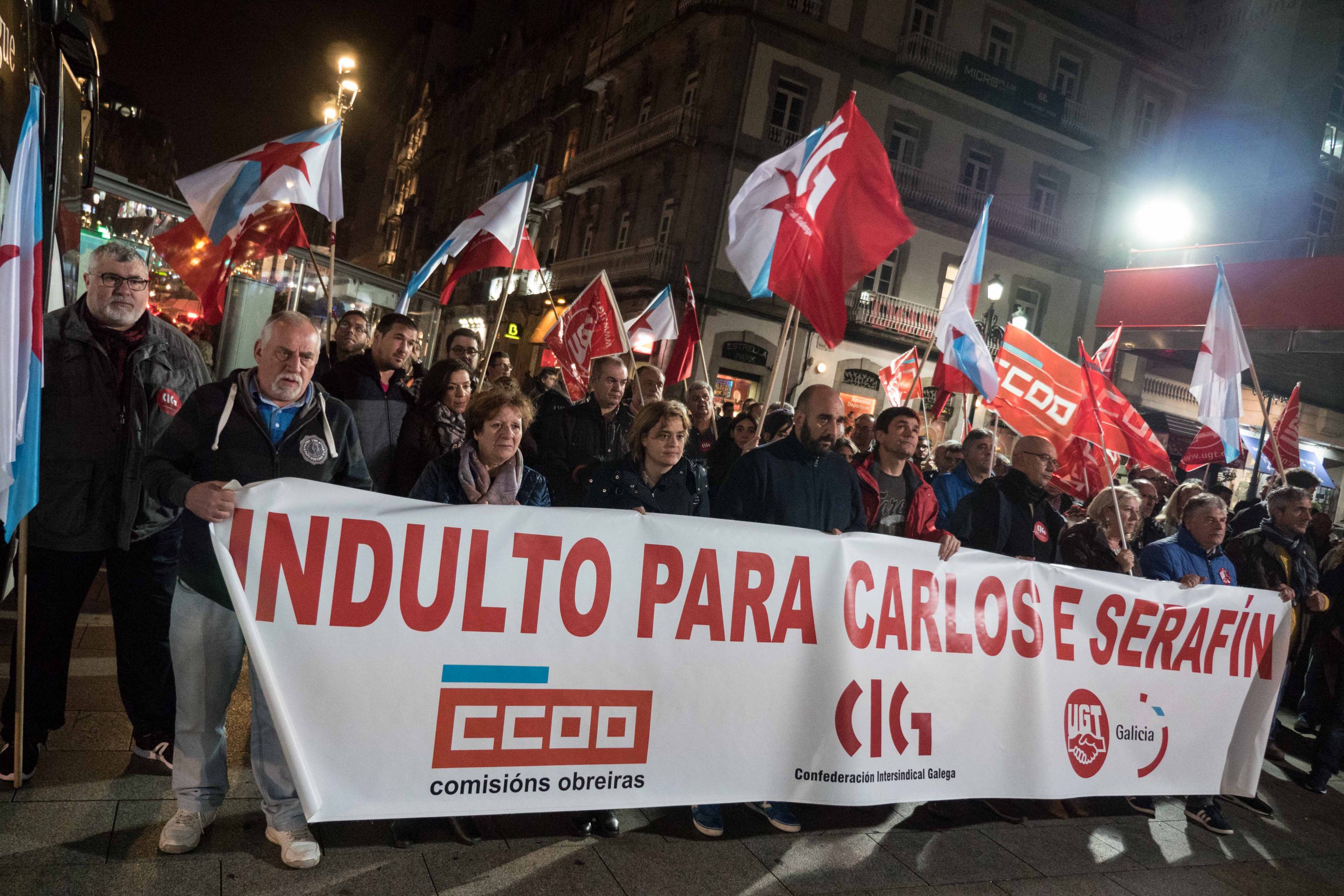 Por volta de dous centos de solidarios/as manifestábanse esta tarde pola rúa do Príncipe, en Vigo, para esixiren máis unha vez o indulto para os compañeiros Carlos e Serafín, condenados a tres anos de cárcere pola súa participación na folga do transporte de 2008.
