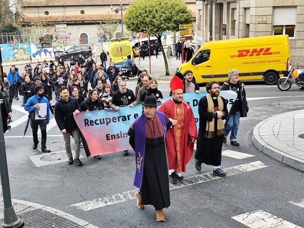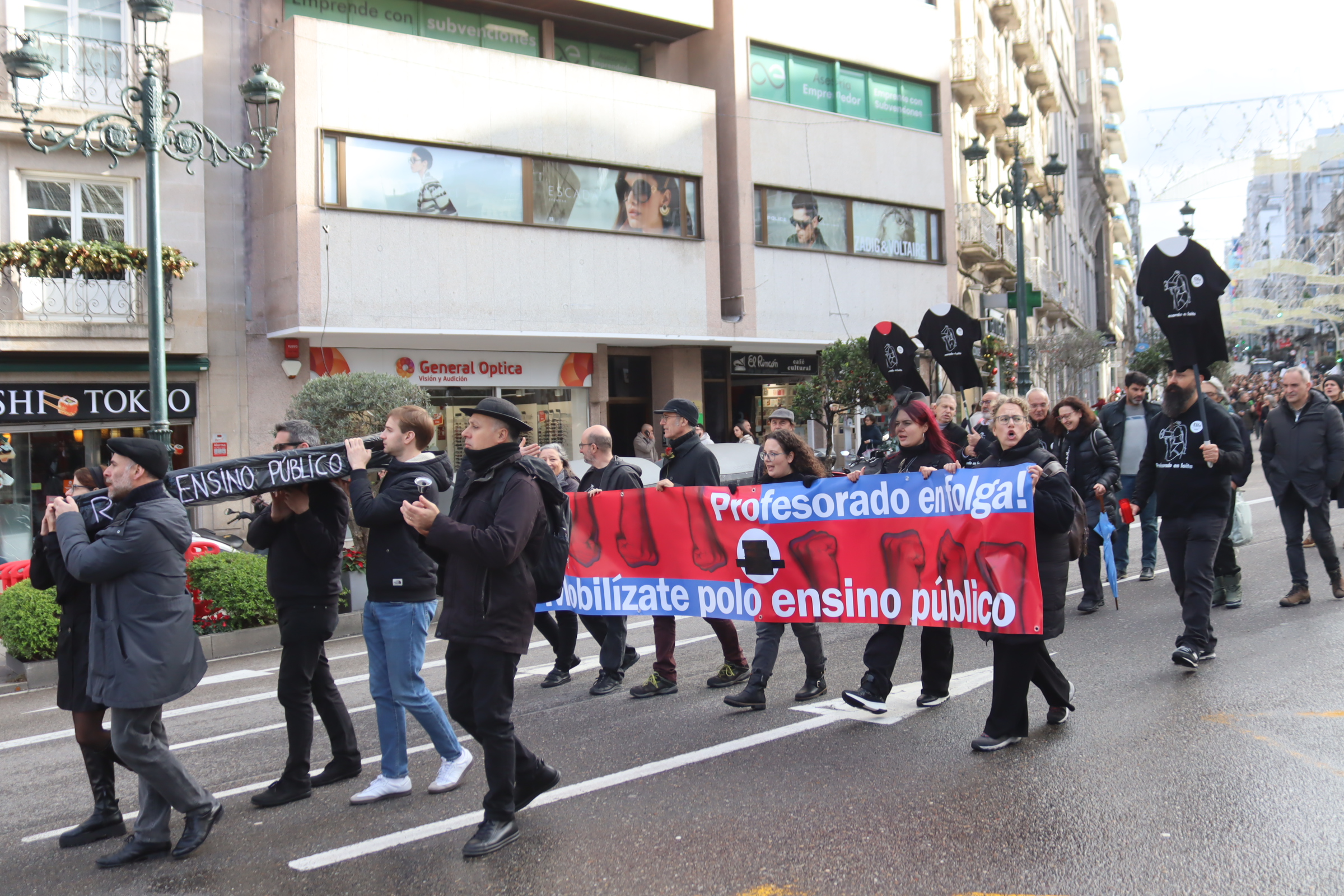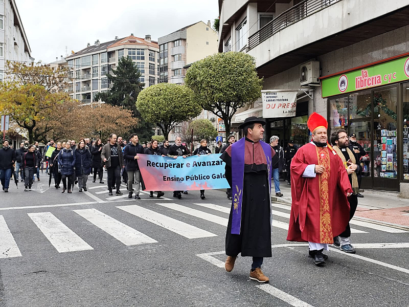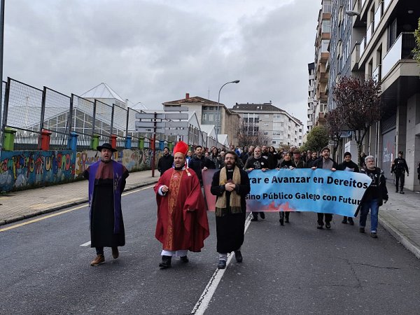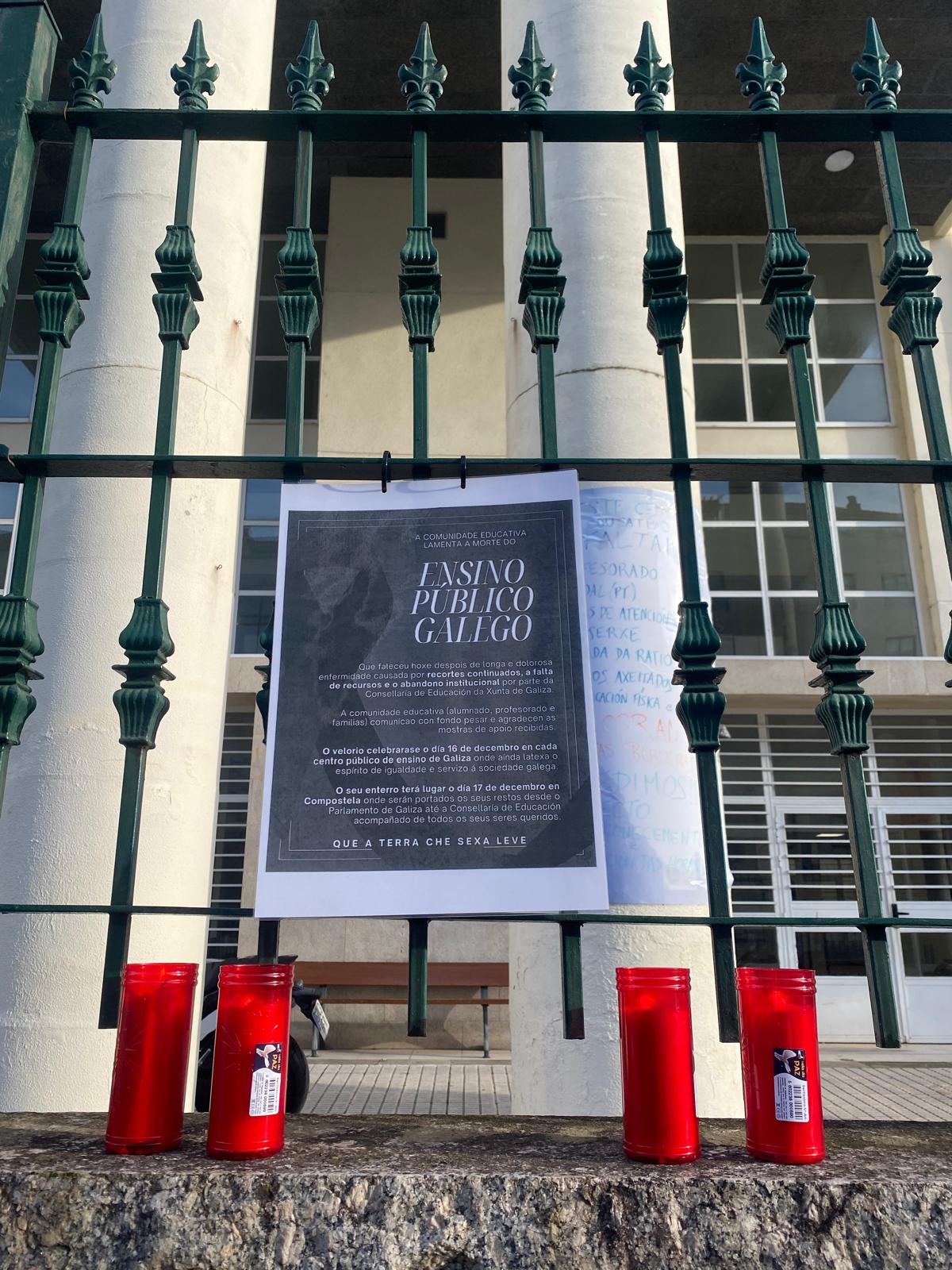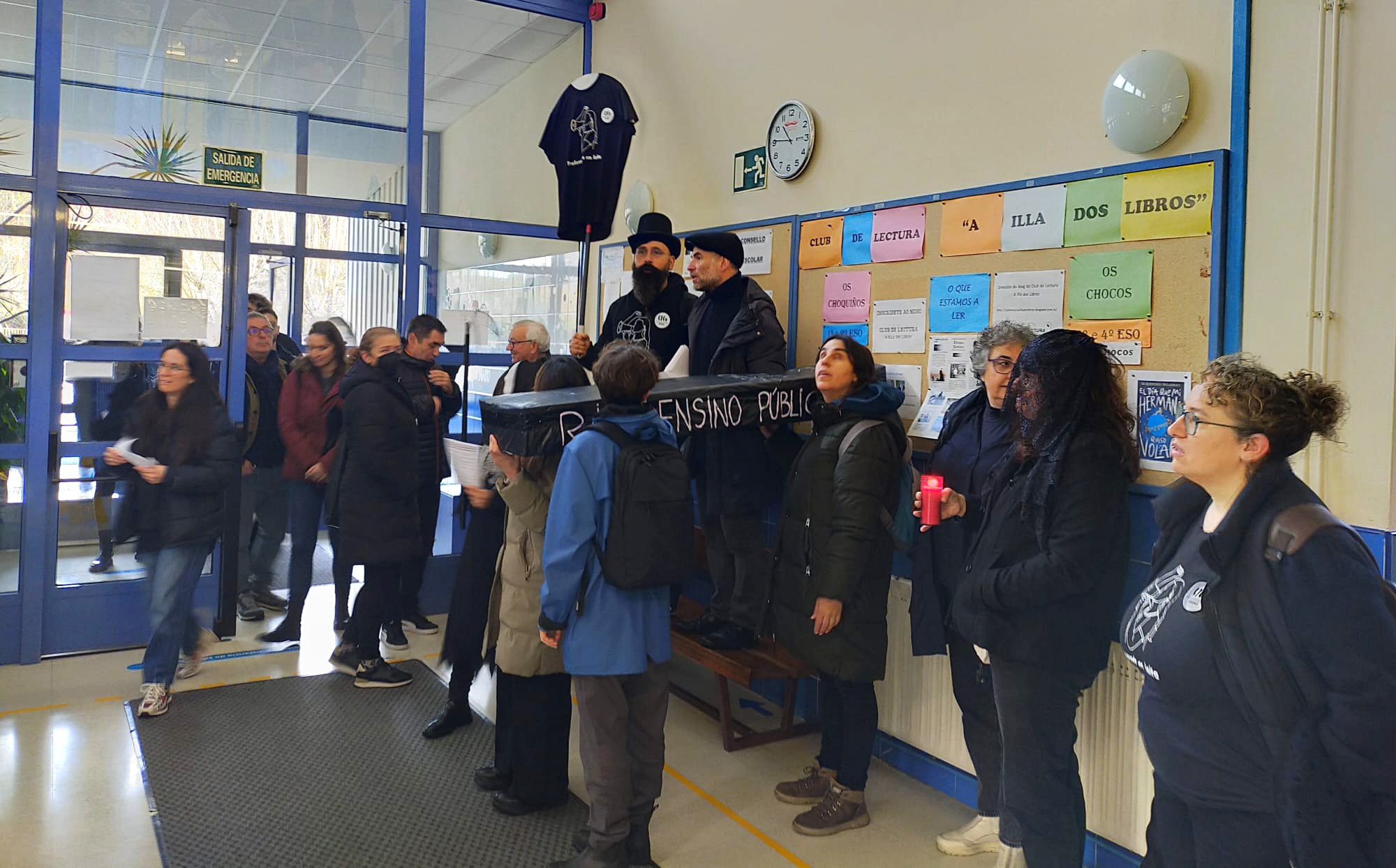 Trátase da manifestación organizada a modo de enterro do ensino público galego, “que as políticas da Consellaría está deixando que morra e non precisamente de forma lenta”, que unirá o edificio onde estes días se aprobaron os Orzamentos da Xunta para 2026 coa sede da Consellaría de Educación, en San Caetano.