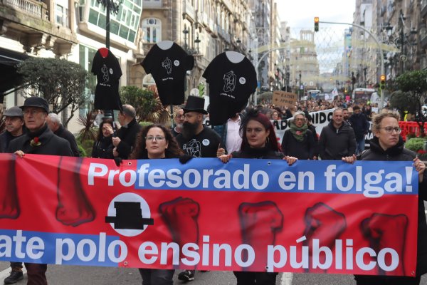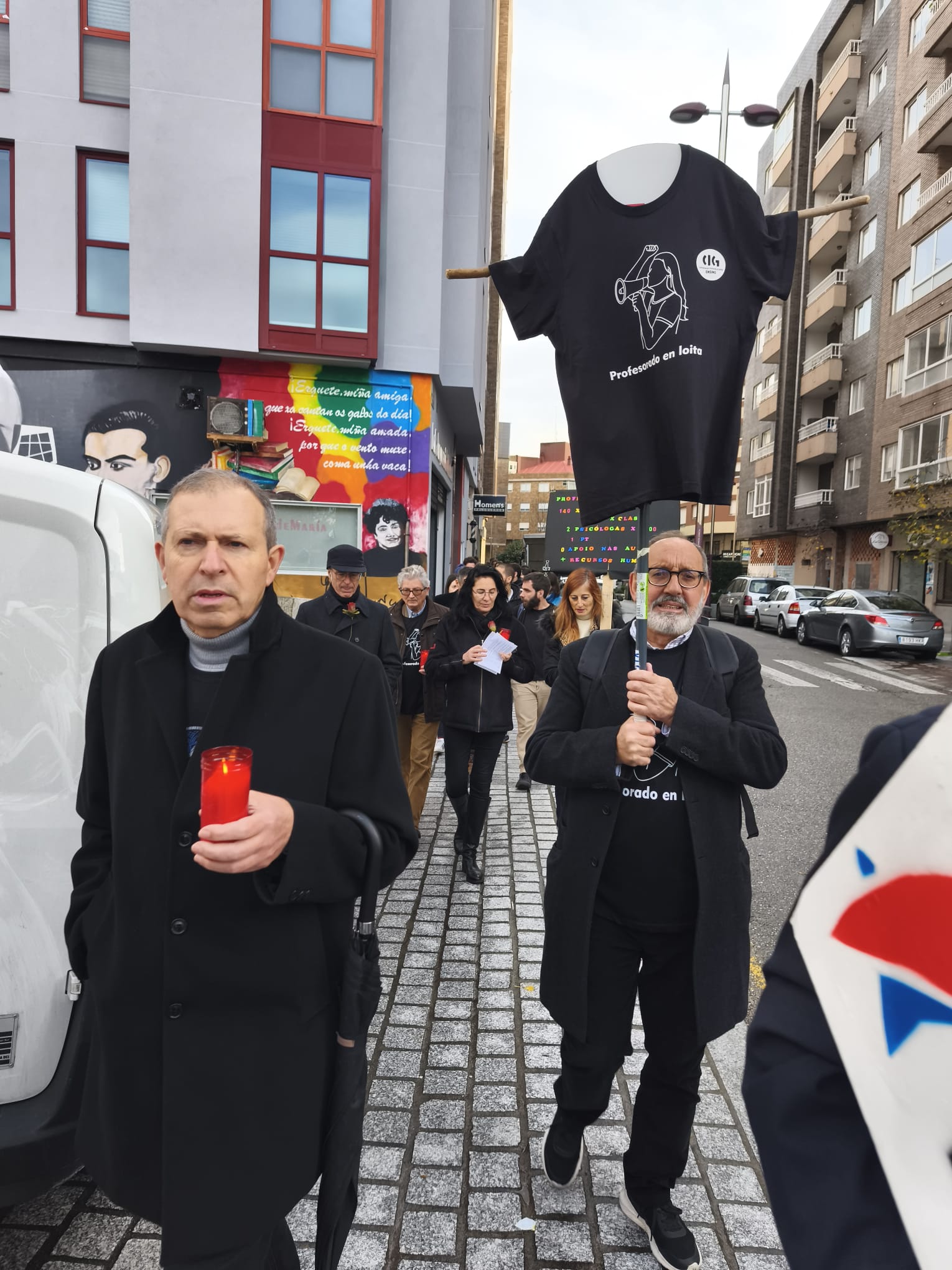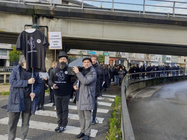 O profesorado galego volveu dar unha lección dignidade, “esa que nos quixeron roubar coma os dereitos laborais pero que aínda nos queda e moita”, como rezaba o manifesto lido ao final das máis de 20 marchas fúnebres e mobilizacións que tiveron lugar espalladas por todo o país durante o cuarto día de folga neste trimestre. Durante as marchas, realizadas nas sete cidades e mais Monforte, O Vicedo, Viveiro, Sober, Negreira, Cangas, Bueu, Moaña, Redondela, Gondomar e Ponteareas, as persoas participantes, maioritariamente profesorado pero tamén membros de ANPA, familias e alumnado, vestían de negro e portaban simboloxía mortuoria.