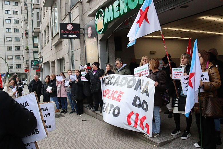 A CIG realizou unha concentración este mércores diante do supermercado que Mercadona ten na Ronda de Outeiro da Coruña para denunciar a actuación da empresa cunha traballadora vítima de violencia machista á que lle retirou o complemento de IT no primeiro mes de baixa e á que despois lle denegou o dereito á concreción horaria para poder coidar das súas crianzas.